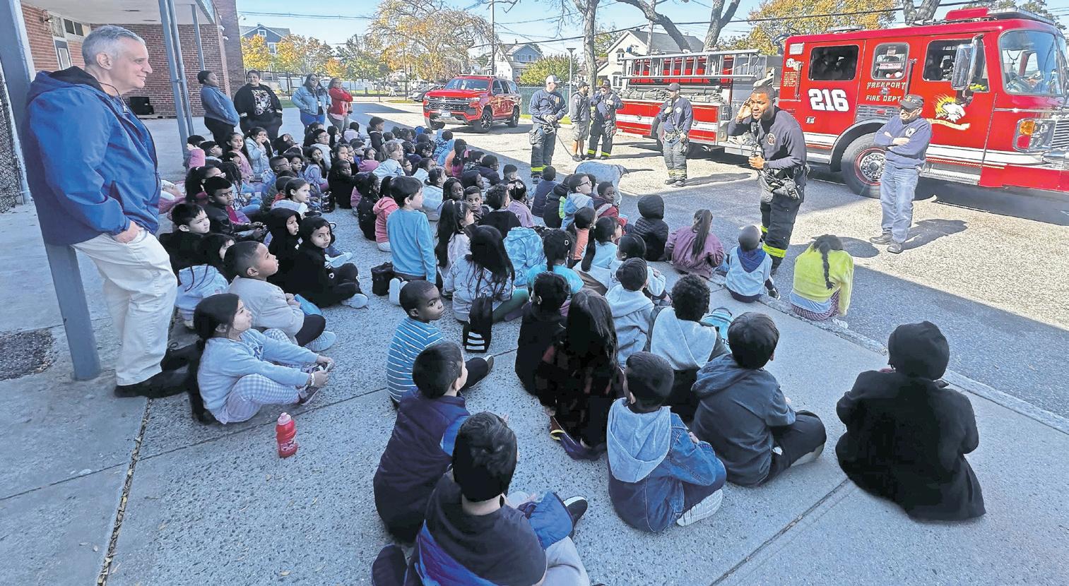 Freeport elementary students listened attentively as firefighters shared fire safety and prevention tips during Fire Prevention Month activities across the district.