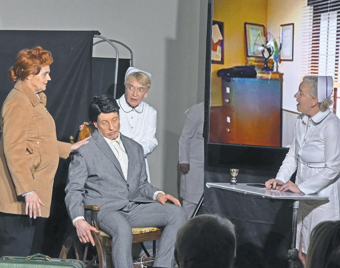 Christine Montick, left, and Fred DiMenna in a scene where Ricky Ricardo has pregnancy cravings similar to those of his wife, Lucy. Photos, Page 10.