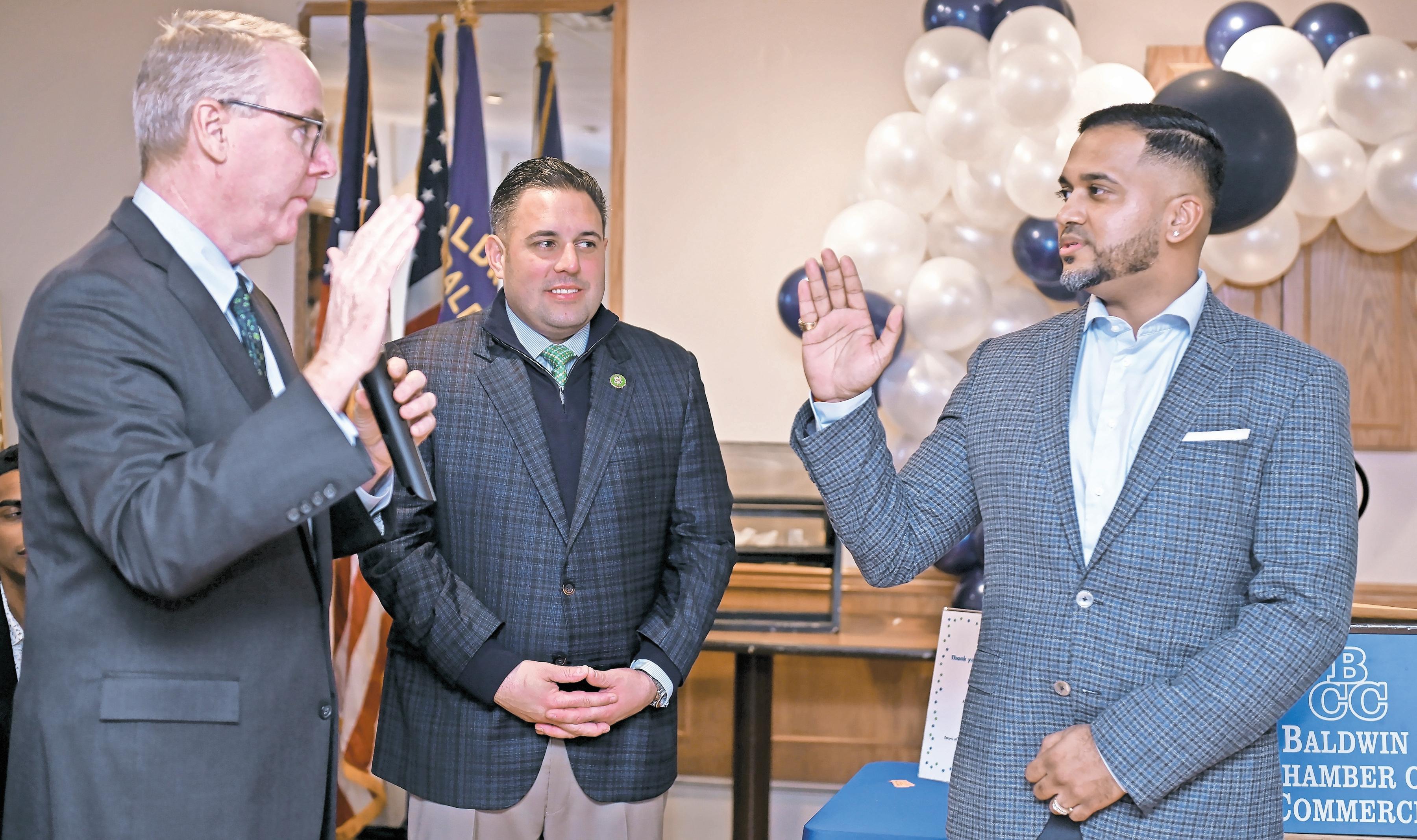 HEMPSTEAD officials, like Supervisor Don Clavin, swore in Victor Sookdeo as the official chamber president in front of Baldwin community members, and his friends and family.