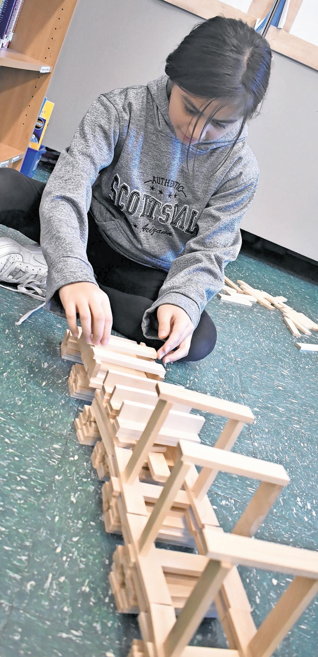 Fifth grade teacher Ashley Vella gave her students their first opportunity to work with the KEVA Planks on Feb. 16.