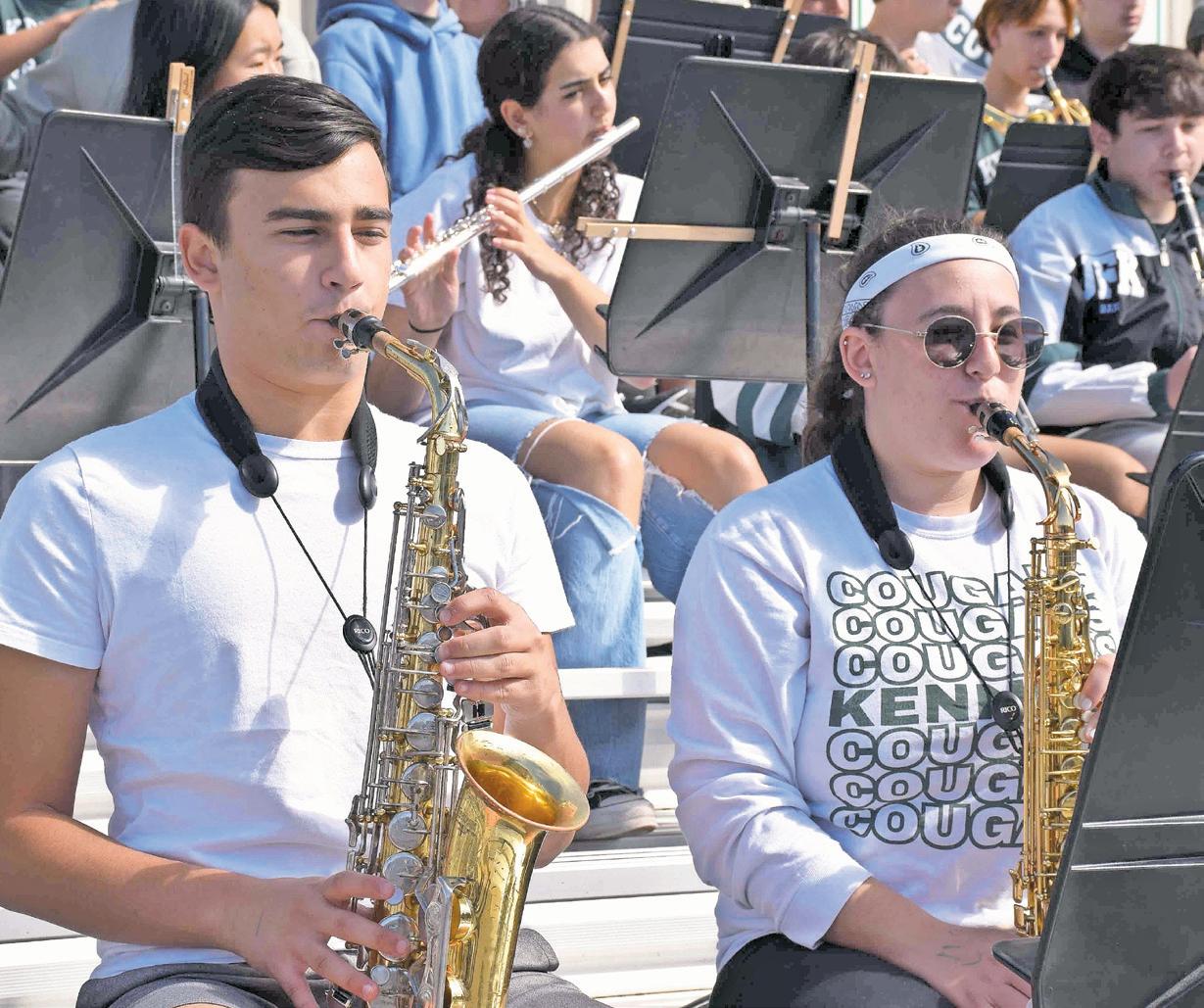 The Kennedy band, led by Walter Avellaneda, provided musical interludes throughout the game. Cheer and kick line teams entertained the crowd, both during the game and at halftime. The Cougar school’s mascot, worn by Lau ren Piscazzi, was also on hand to spread school spirit.