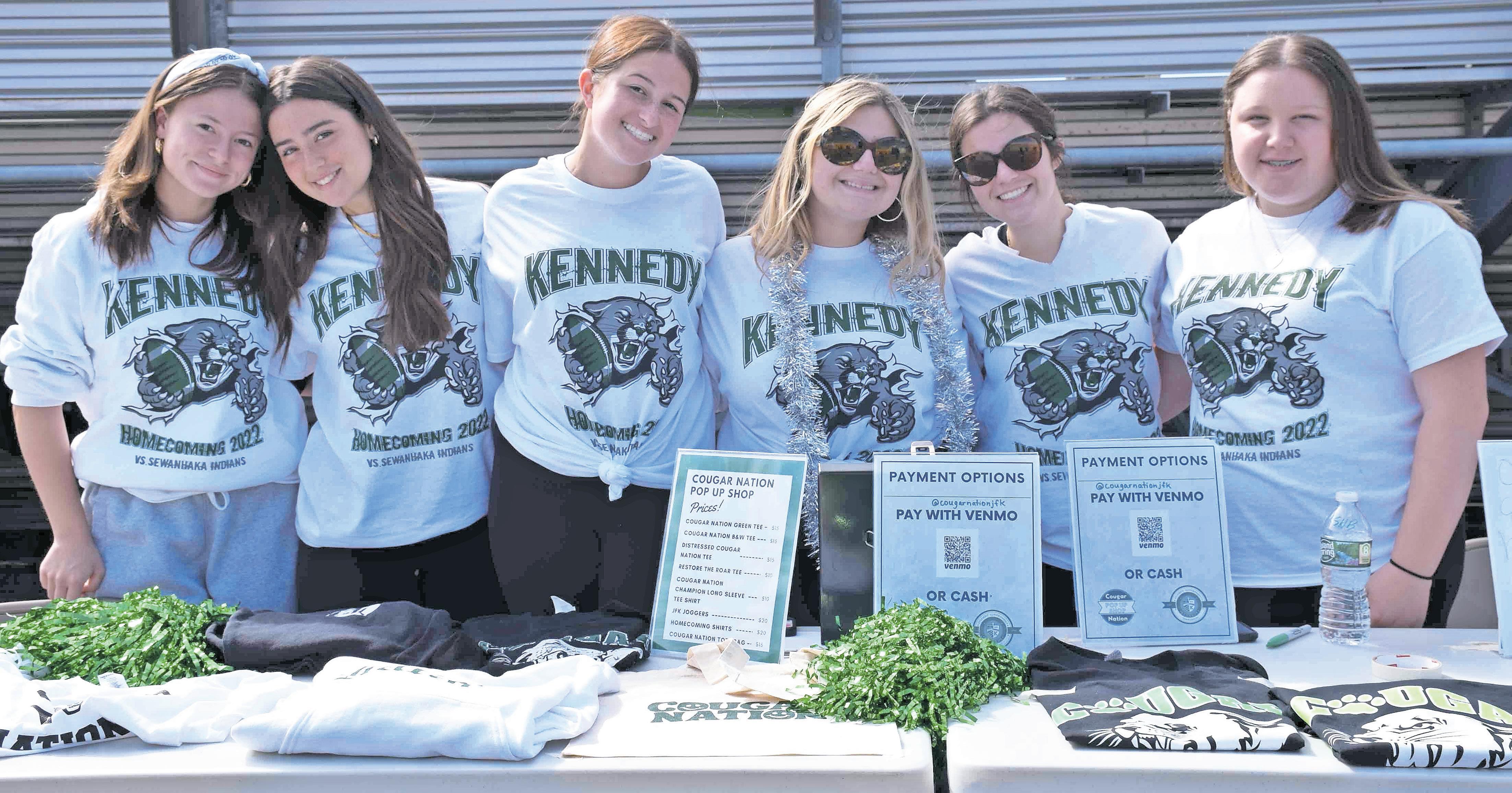 Photos courtesy Bellmore-Merrick Central High School District alexa berger, Morgan Galdamez, Carly Sherman, Sadie Freifeld, Sydney Brewer and Beverly Kleinman of Kennedy Student Government sold Cougar swag.