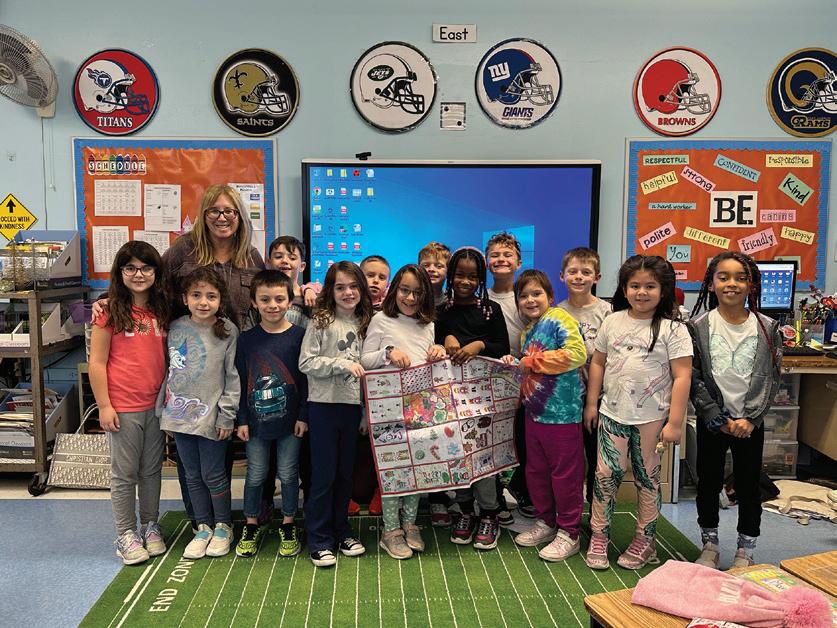 Right, Lynn Coyle, principal of Park Avenue School in the North Bellmore School District, with Nina Lanci, a longtime North Bellmore school board member and founding member of the Polar Express. Above, members of Mepham High School’s Leo’s Club Gulsham Singh, Samira Ramoutar, Samar Ahmad and Areeba Shahid manned a station inside the school. Story, more photos, Page 3.