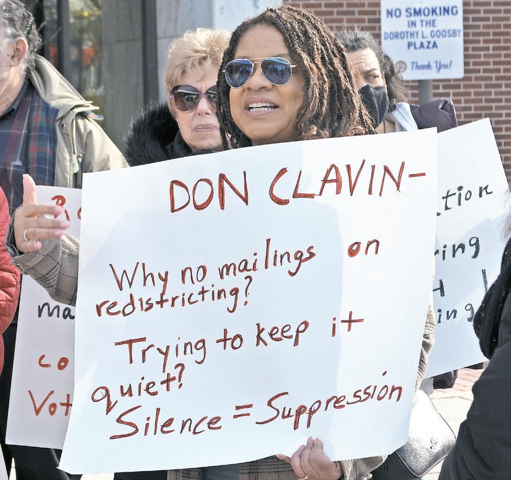 STATE SEN. KEVIN Thomas, second from left, was joined by Nassau County Legislators Carrié Solages, far left, Debra Mule, and Joshua Lafazan at a news conference to discuss the county’s freezing of property tax assessments for a third consecutive year. County Executive Bruce Blakeman is extending the grievance deadline to April 3.