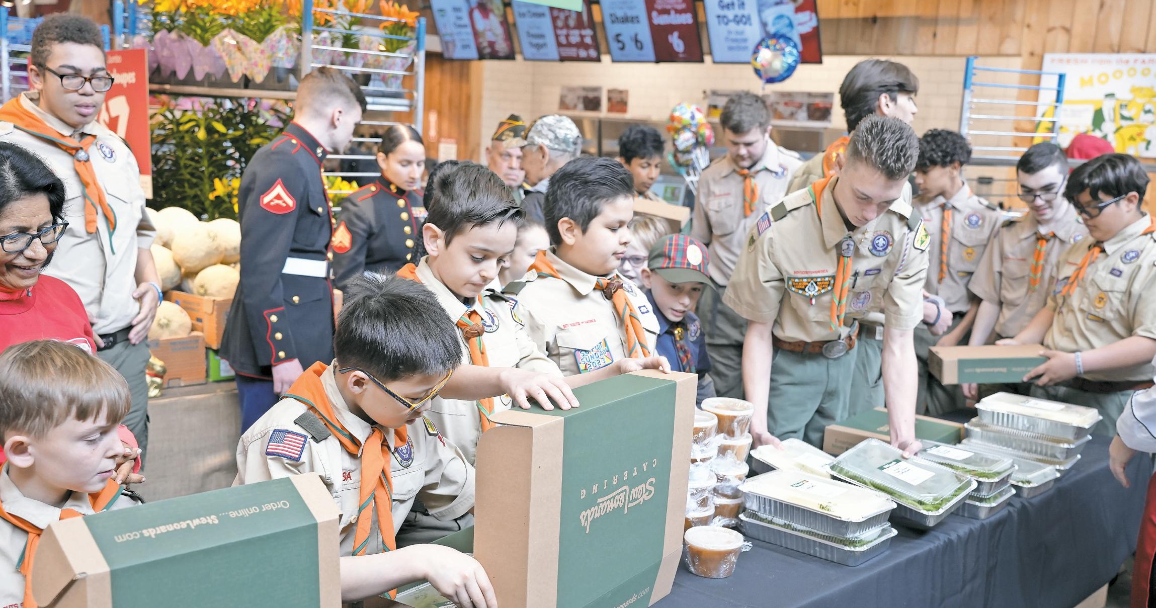 Operation Easter Basket was an effort that the grocery store came up with to help military families have special meal for the holiday. Local volunteers — Boy Scout Troop 362, members of Girl Scout Troop 1315, American Legion Post 1082 and Veterans of Foreign War Post 2736 — gathered on April 7 to help pack boxes, making it a true community
