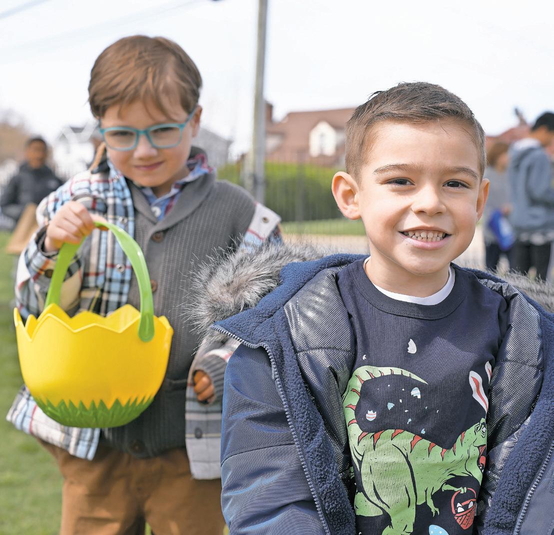 WAlker shoenbAch, 6 and Daniel Stuckey, 4, center left, were ready to hunt for some eggs.