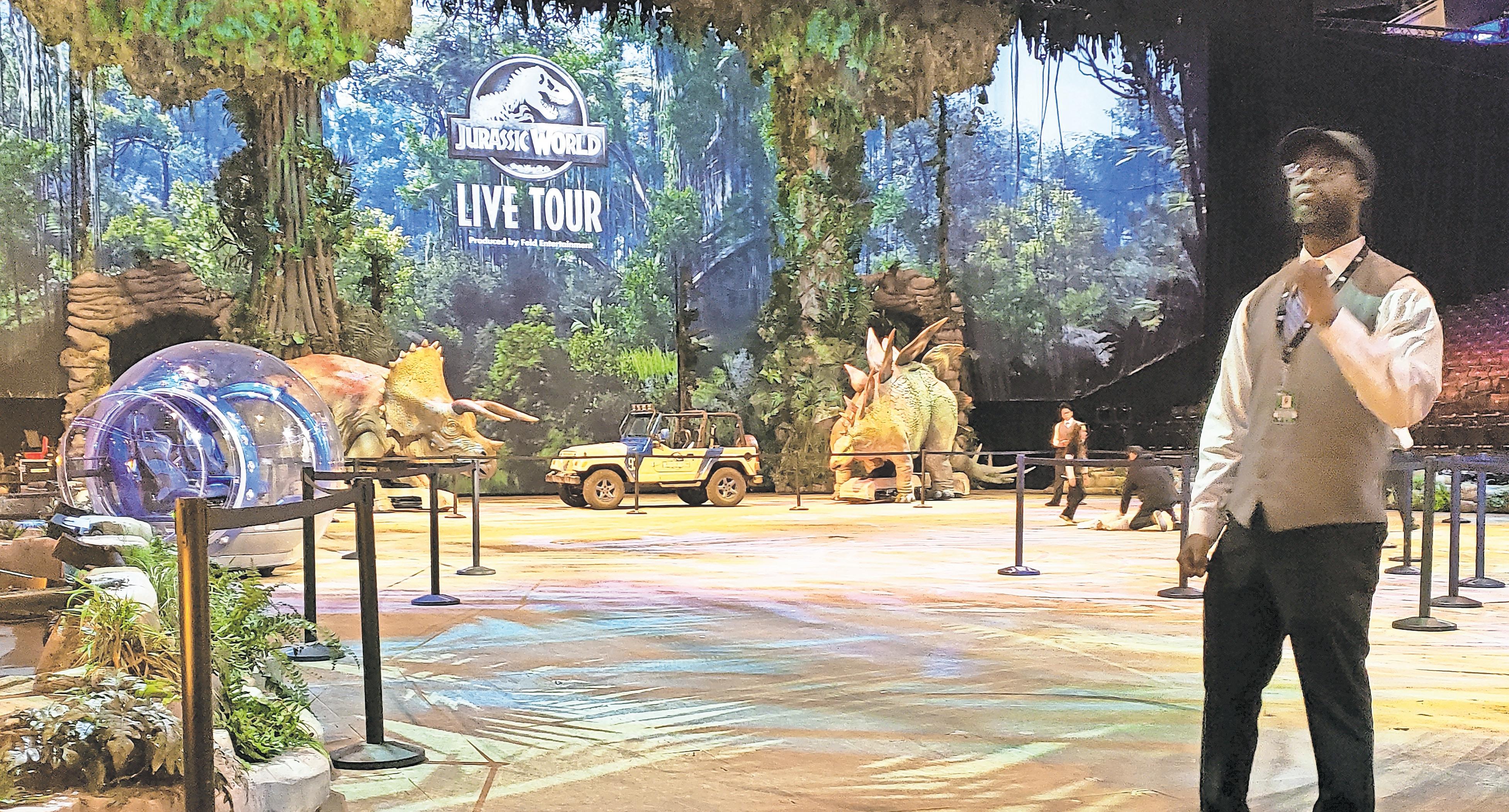Young visiTors goT a photo-op with a triceratops at the “Jurassic World Live Tour” pre-show.