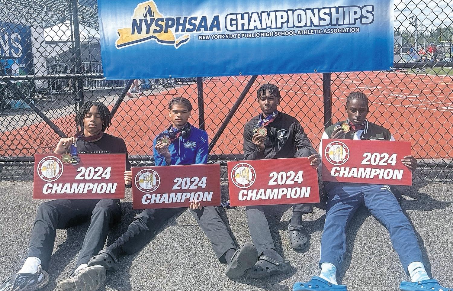 Elmont Memorial High School’s boys’ 4 x 400-meter relay team brought the school another state title at the state track and field championships at Cicero-North Syracuse High School earlier this month.