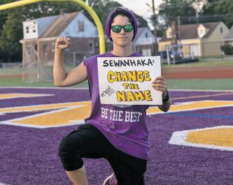 Linsalata started a Change.org petition in August, calling for the school district to change the Sewanhaka High School mas cot. Although she received some back lash, she said as a mental health advocate and LGBTQ+ person, she felt it was important to listen to the lived experienc es of marginalized people and stand in solidarity.