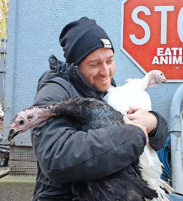 Humane Long IsLand founder John Di Leonardo embracing the rescued turkeys