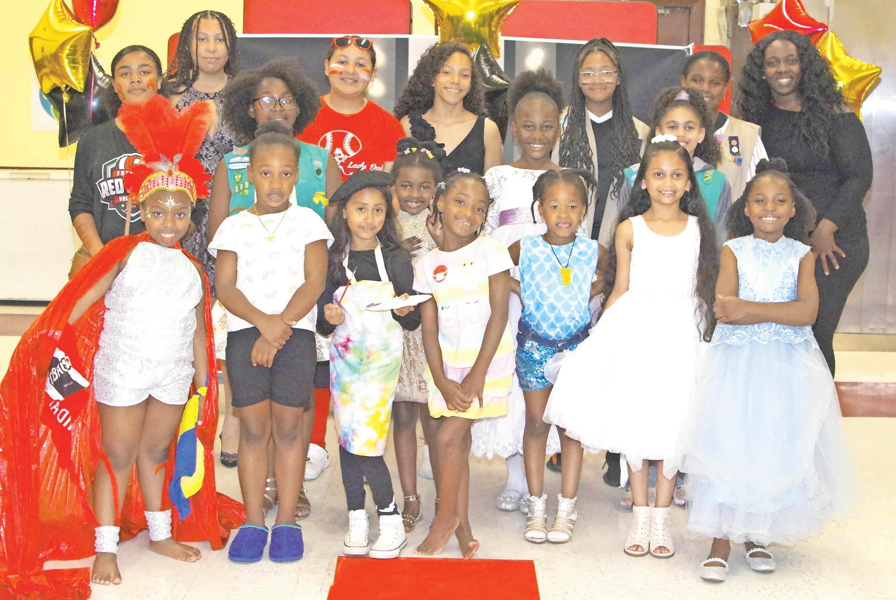 QUEENETTE KARIKARI, THE inspiring leader of Troop 2221, stands proudly with the talented models, symbolizing the dedication and guidance that make the Freeport Girl Scouts Fashion Show an unforgettable event.