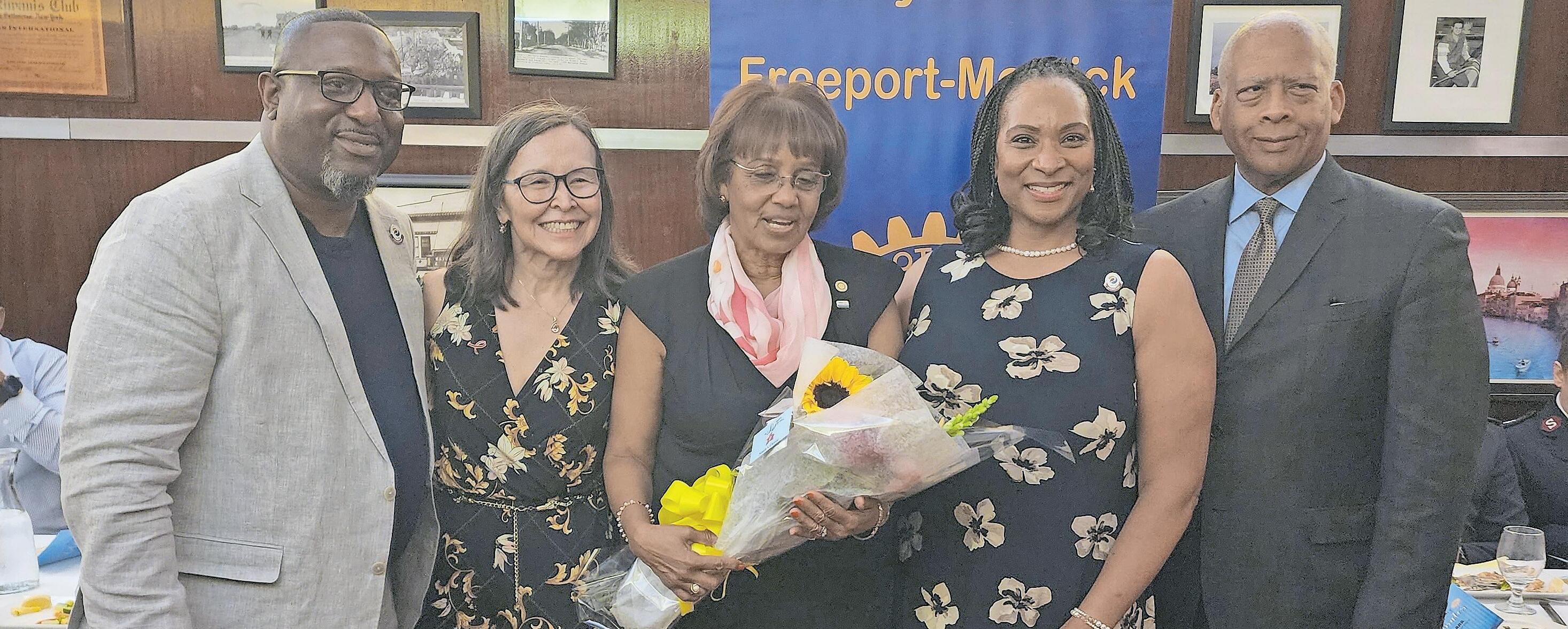 The Freeport-Merrick Rotary Club, with its newly installed leadership board members, remains dedicated to its 80-year legacy of community service, emphasizing “Service Above Self,” focusing on peace, promoting mental health, and fostering an inclusive environment while continuing to serve the Freeport community. From left, Barry McDaniel Emily Margulis, Florence Marc-Charles Dee Dee Harrison Paul Gamble.