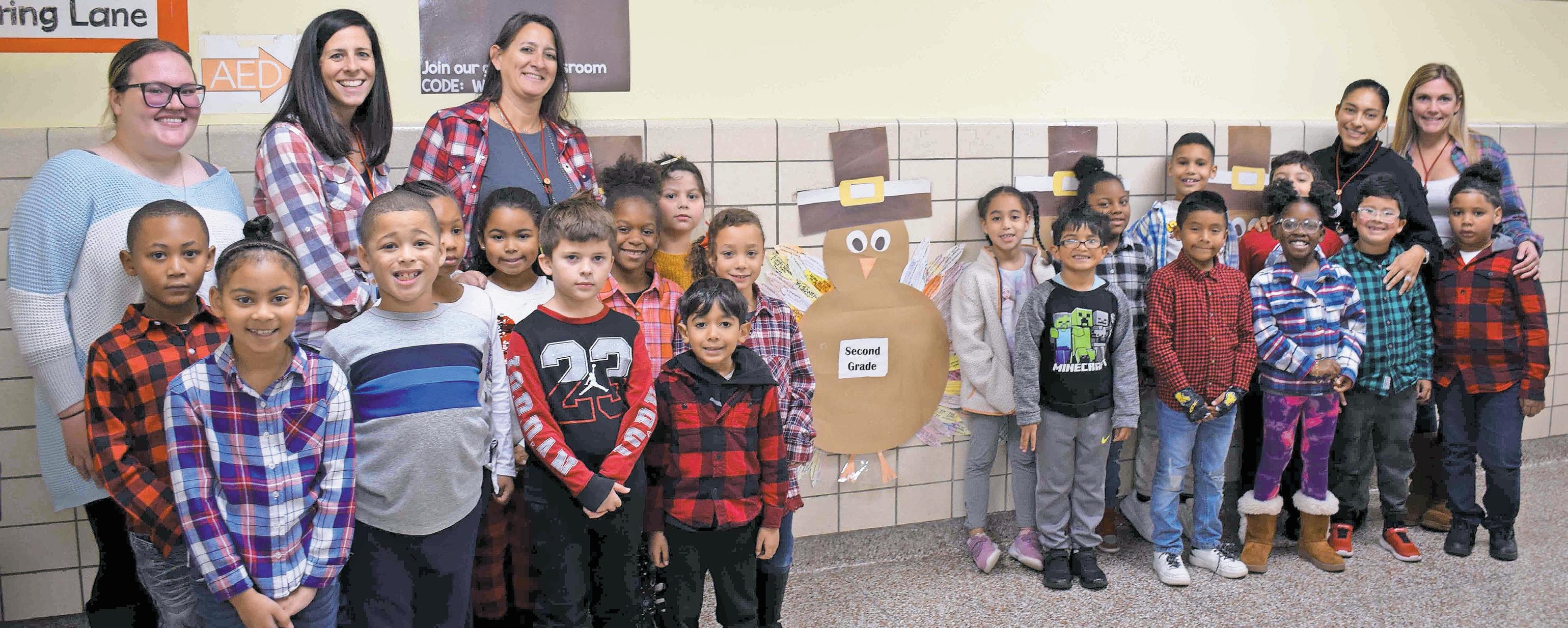 Students and staff from Leo F. Giblyn, New Visions, and Archer Street elementa ry schools gathered a large amount of nonperishable food items for Freeport Outreach and the Our Holy Redeemer Food Pantry. The food bank will deliver thousands of food items to households in need throughout the holiday season. Additionally, kindergarten students from Columbus Avenue School created Thanks giving bracelets with colorful beads that represented many Thanksgiving season principles, including yellow for peace and friendliness, an ideal that Freeport Schools consistently tries to implement.