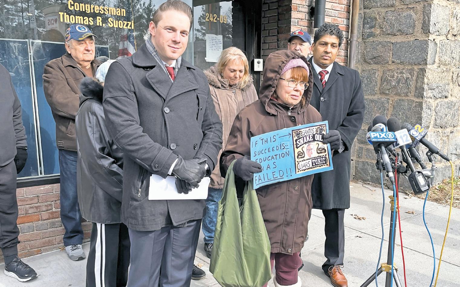 One attendee of the protest against Santos, Issy Weisfelder, spoke about how offended he was by Santos’ usurpation of Jewish heritage. As a child of Holocaust survivors, Weisfelder condemned the congressman’s lies as offensive and a sign that he could not be trusted by the Jewish or gentile residents of the 3rd District.