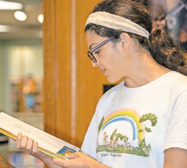 Damiano meets with the eight members once a week at the library’s history room on the second floor. The room is a cozy space that provides members a sensoryfriendly area to hone their reading skills, but it’s also a space to unwind, have fun, and socialize. When the group settles into their seats, they open their meeting with their playlist, which Damiano said includes their unofficial theme song, “Smile,” by Vitamin C. The playlist gets the club excited to start their one-and-a-half-hour meet up and transitions to members updating one another on their lives since the previous meeting.