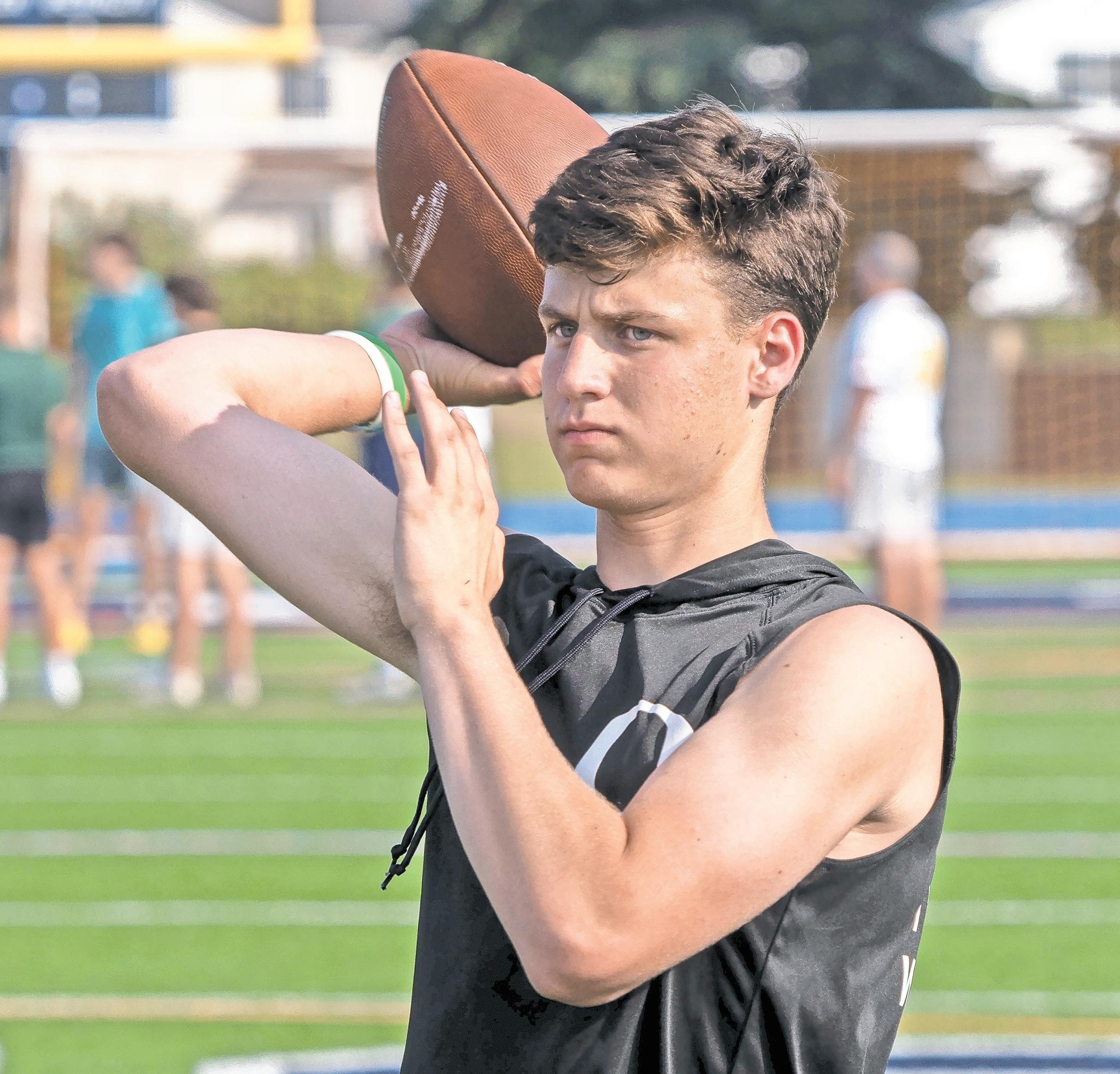 Jack Fugazy prepared to hit the buzzer to dunk Glen Cove Police Officer Peter Grella into the water tank at National Night Out on Aug. 1. Story, more photos, Page 3.