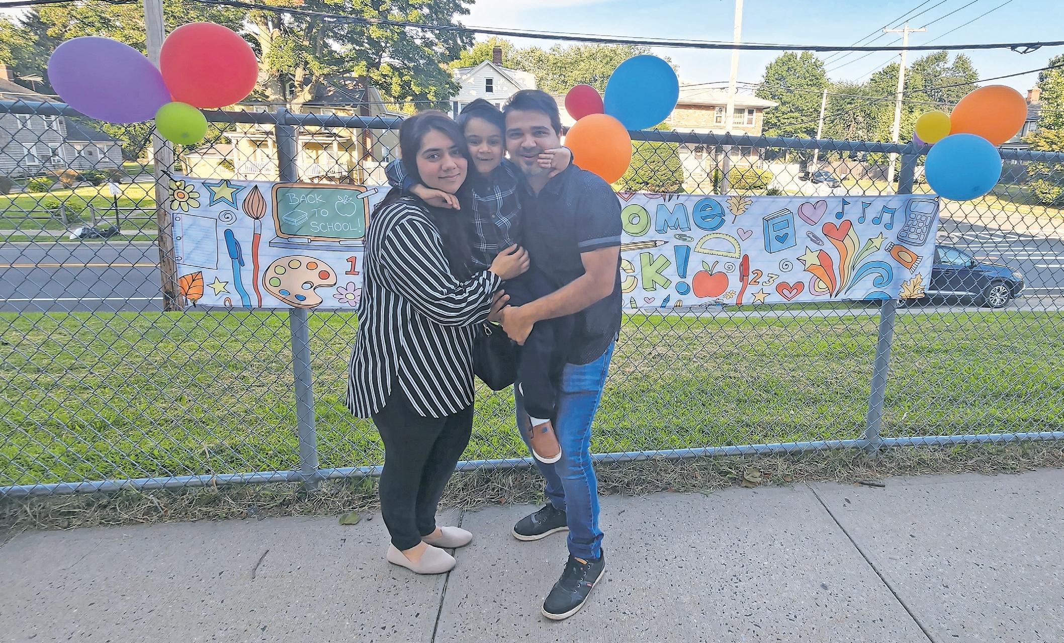 Families waited for the first day of school to begin at Deasy Elementary School, including Salma Haider, left, Mikail and Mukhtar Amiri.