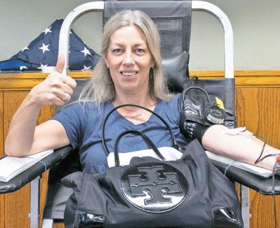 Noelle Hatalovsky/Herald photos Lynne Philips, from Glen Cove, said she donates whenever she can. Phlebotomist Ricky Bisnath drew her blood.