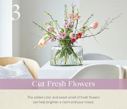 The added color and sweet smell of fresh flowers can help brighten a room and your mood.