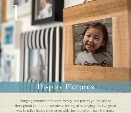 Hanging pictures of friends, family, and places you’ve visited throughout your home creates a feeling of belonging and is a great way to relive happy memories with people you love the most.