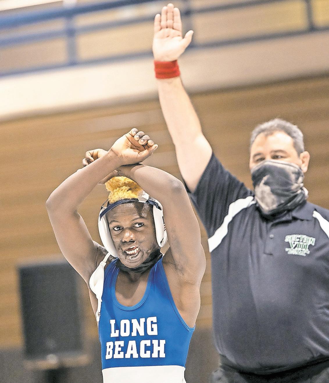 Last year, Sibomana-Rodriguez won a New York State high school wrestling championship as an eighth grader at Long Beach Middle School. This year, as a freshman at Long Beach High School, he advanced to the semifinals where he finished in third place. He didn’t go alone, though, ESPN came with him.