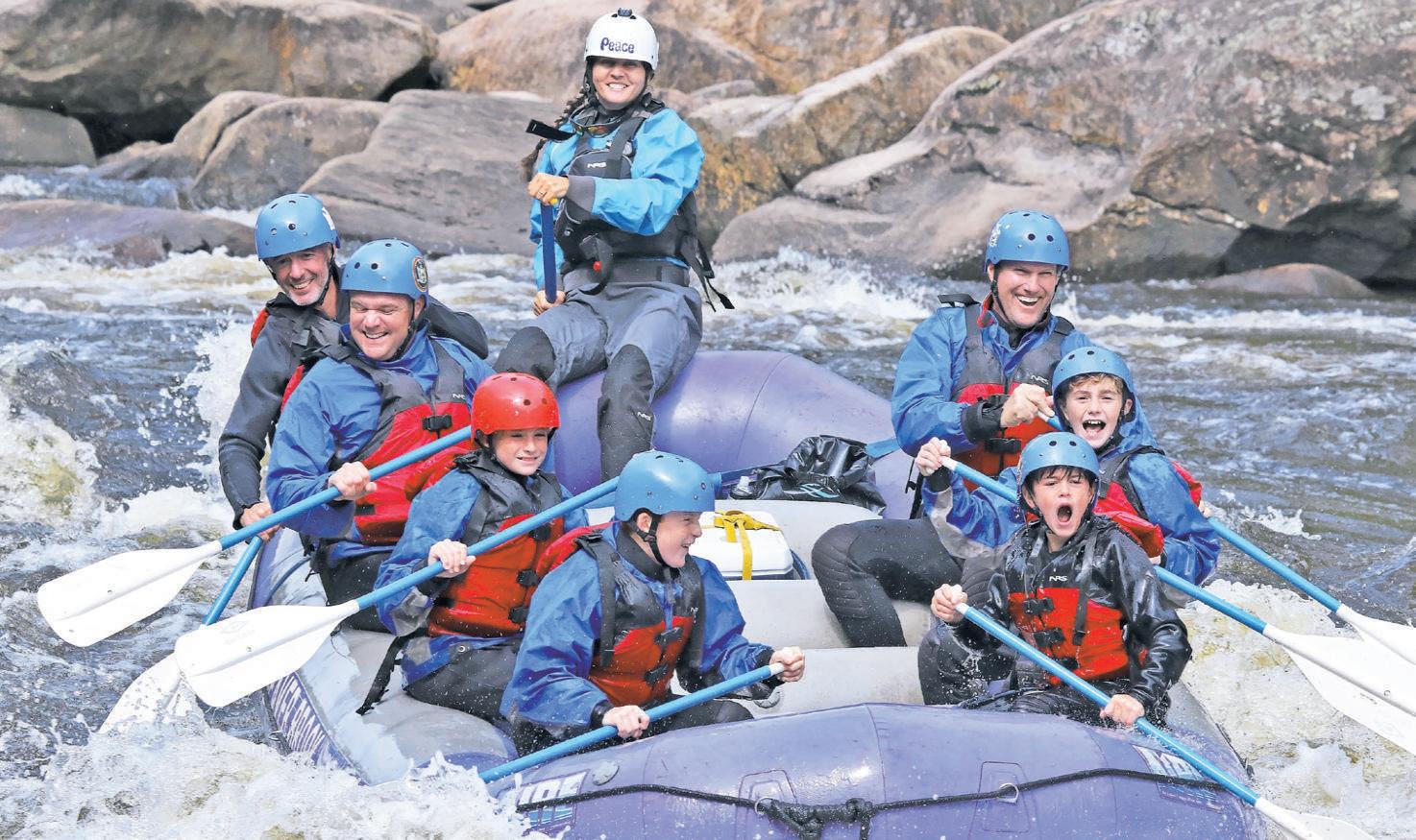 After arriving well after dark, the troop set up their tents and sleeping gear. In the morning, after a breakfast of pancakes and sausage, the troop drove into the Hudson Gorge wilder ness where they met their rafting guides and were suited up with full wetsuits, PFDs, helmets and splash jackets.