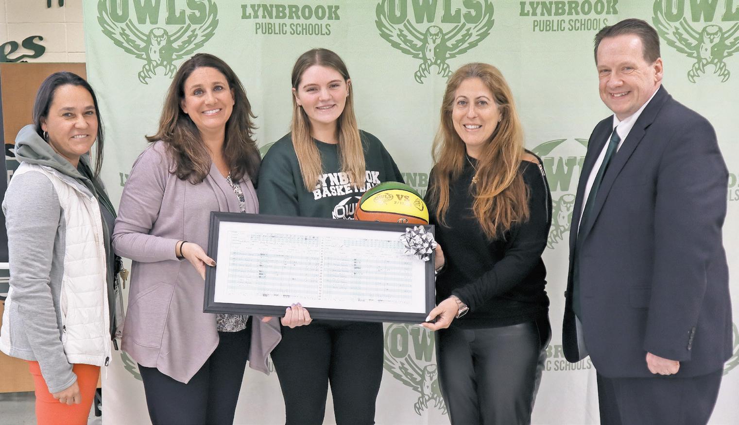 Pena said at the three minute mark, the entire crowd erupted as Benedict hit her eighth three pointer of the game, breaking the Lynbrook record.