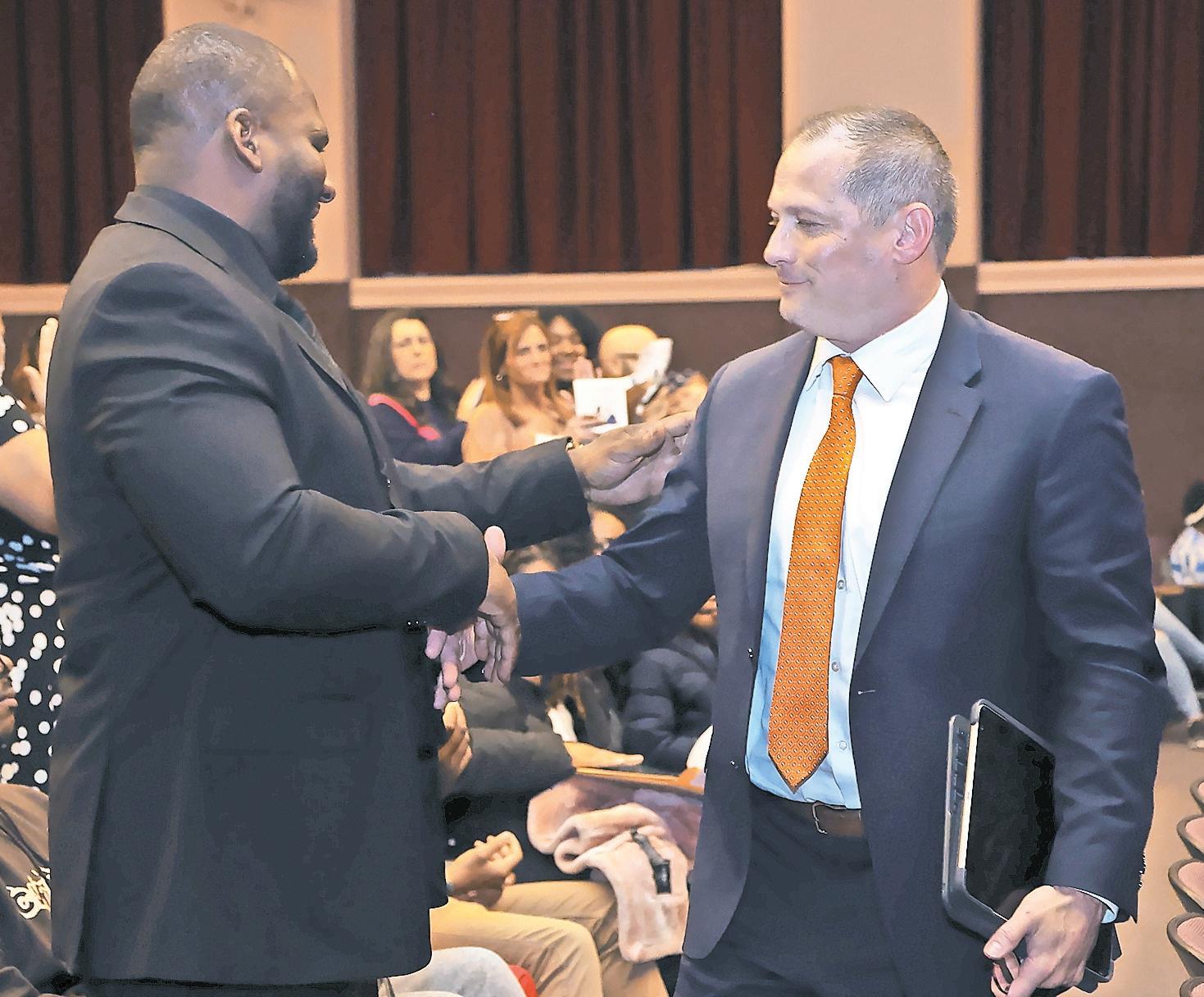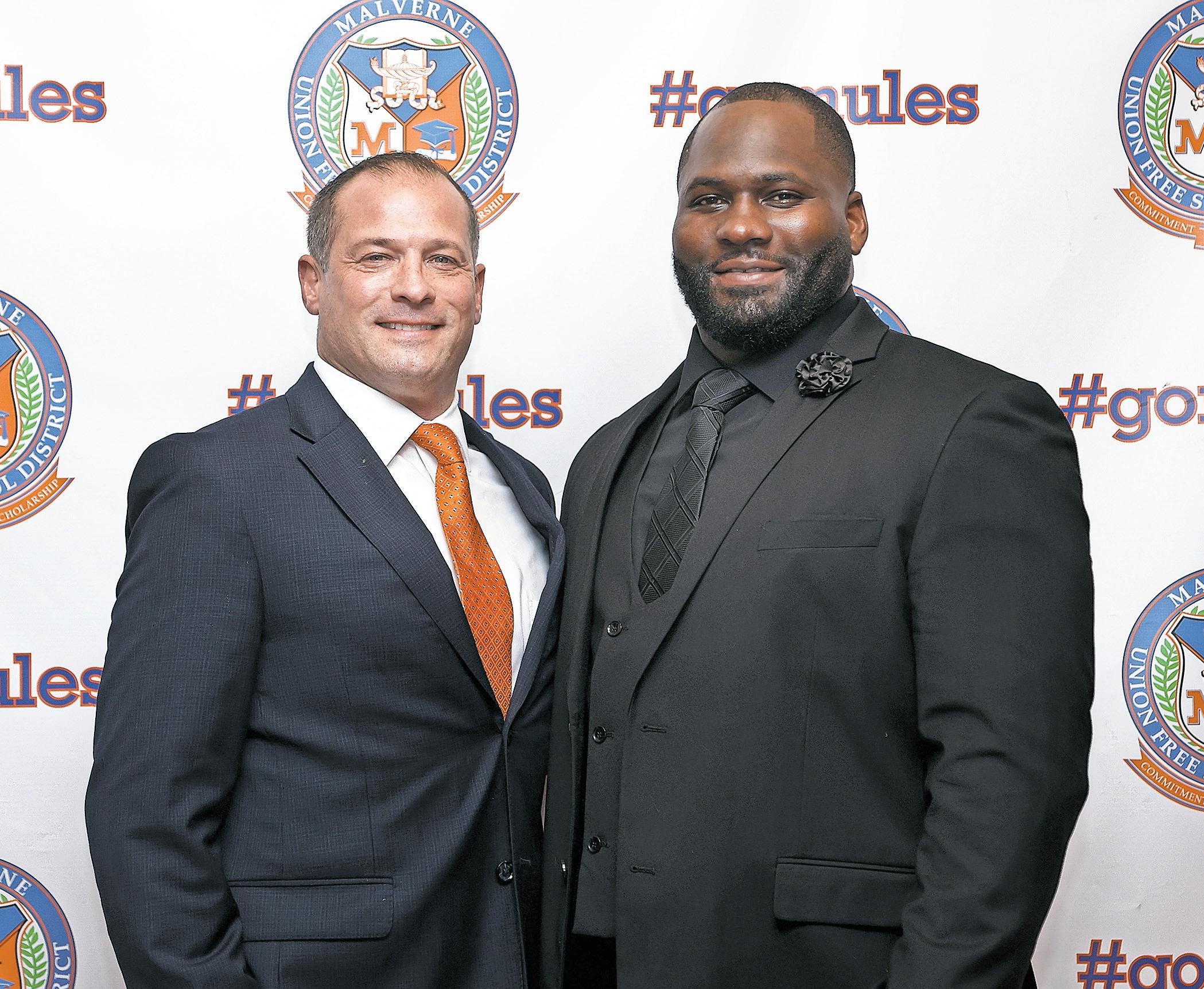 Malverne High School Principal Vincent Romano and JV football coach Tyrell Wilson each received the 2023 Dr. Martin Luther King Jr. Humanitarian Award for their extraordinary efforts to improve the community and dedication to