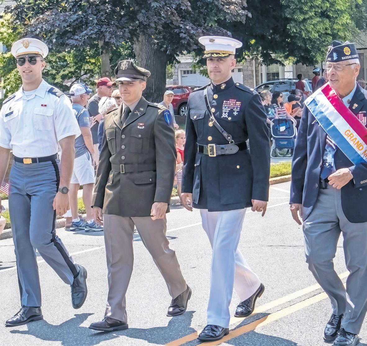 Veterans representing the military branches marched with pride in the Village of Malverne Memorial Day parade Monday, including Grand Marshal Pasquale Alesia, far right.