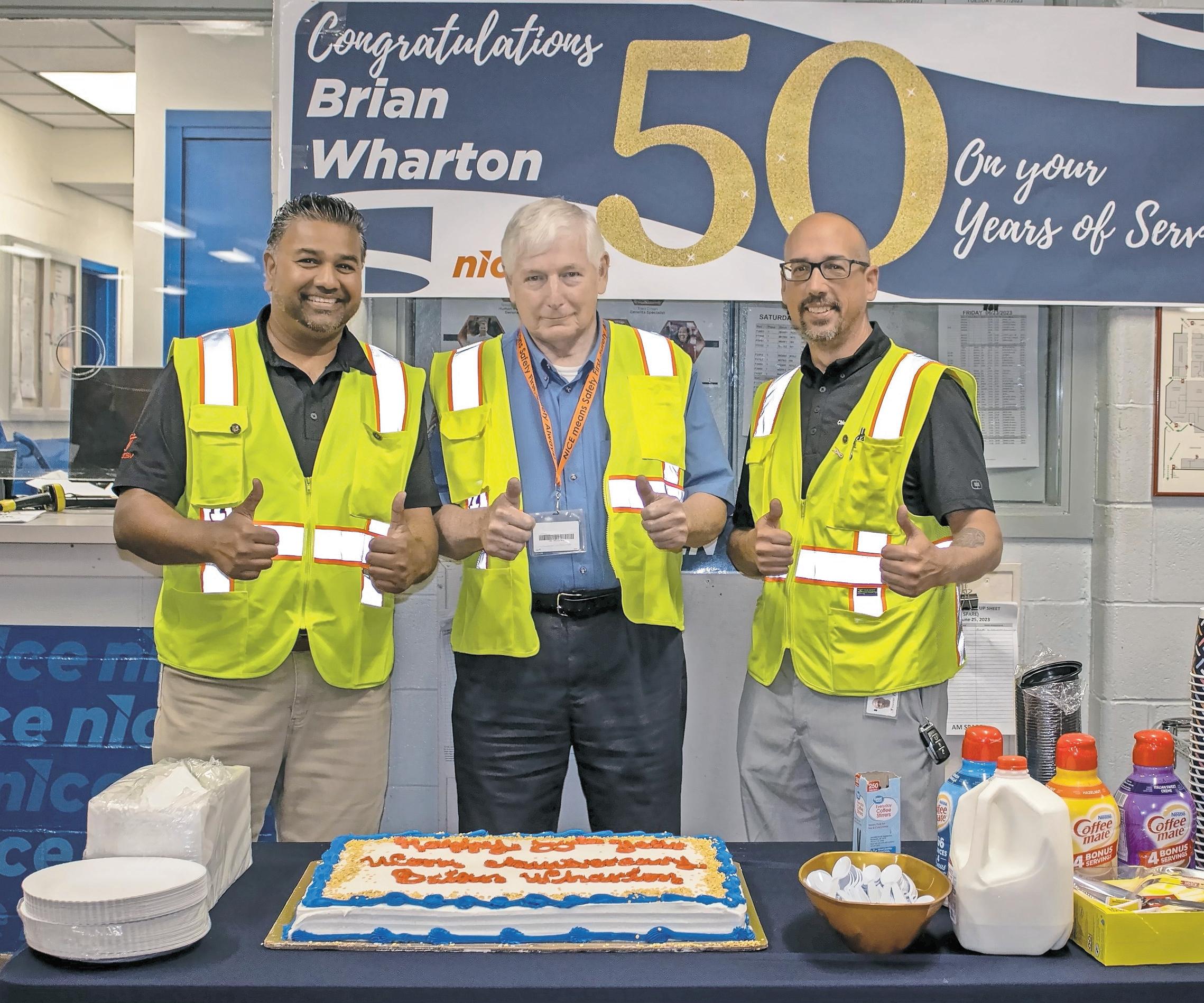Brian Wharton, a Nassau Inter-County Express Bus Senior Operator, recently commemorated 50 years of service to the agency.