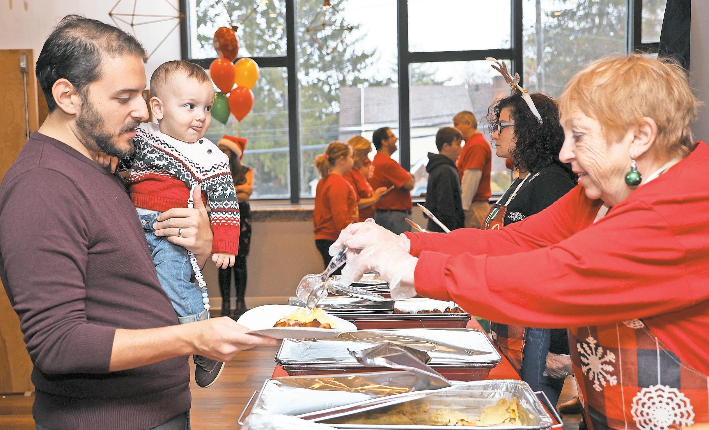 Mrs. Claus Chats with Ryan Hughes, 2. GiorGio randazzo, 1, looks hungry as his dad, Severino, balances the plate.