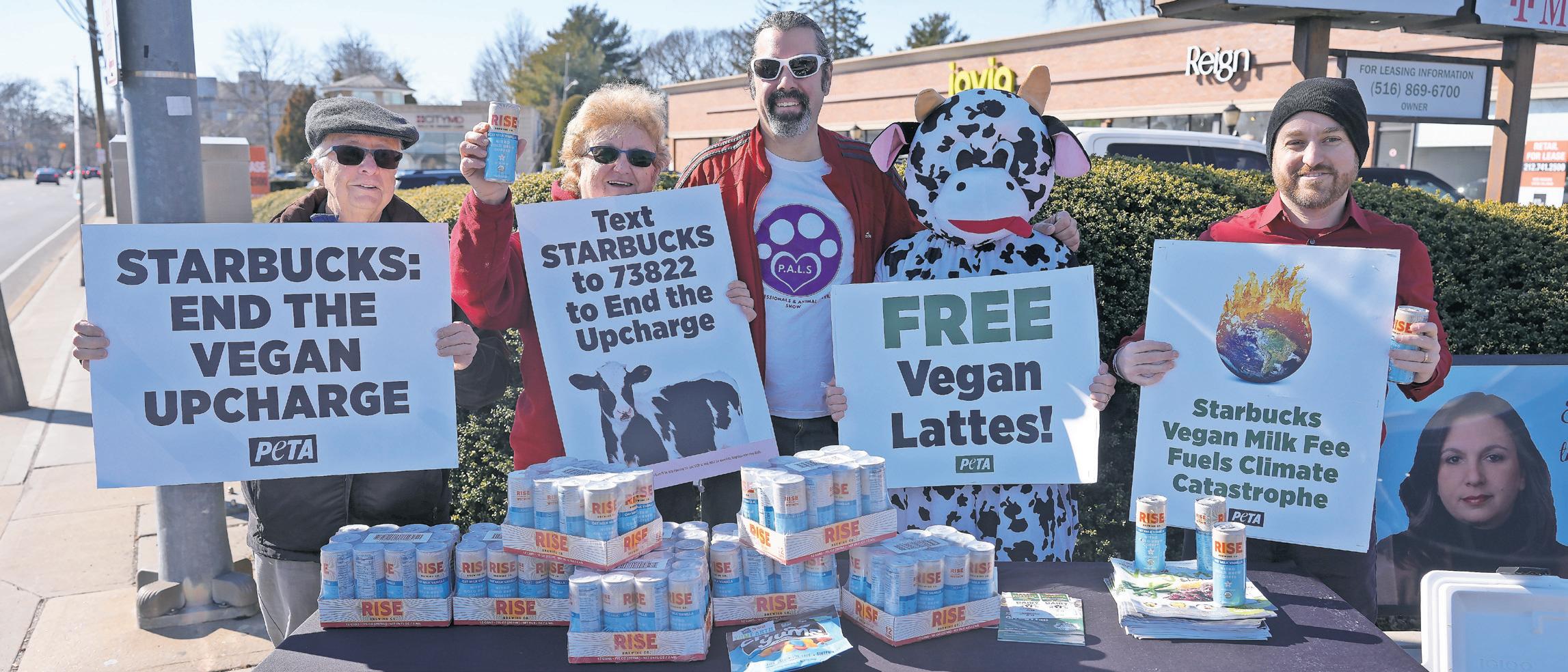 Humane Long Island protests non-dairy milk surcharge by handing out oat milk coffees