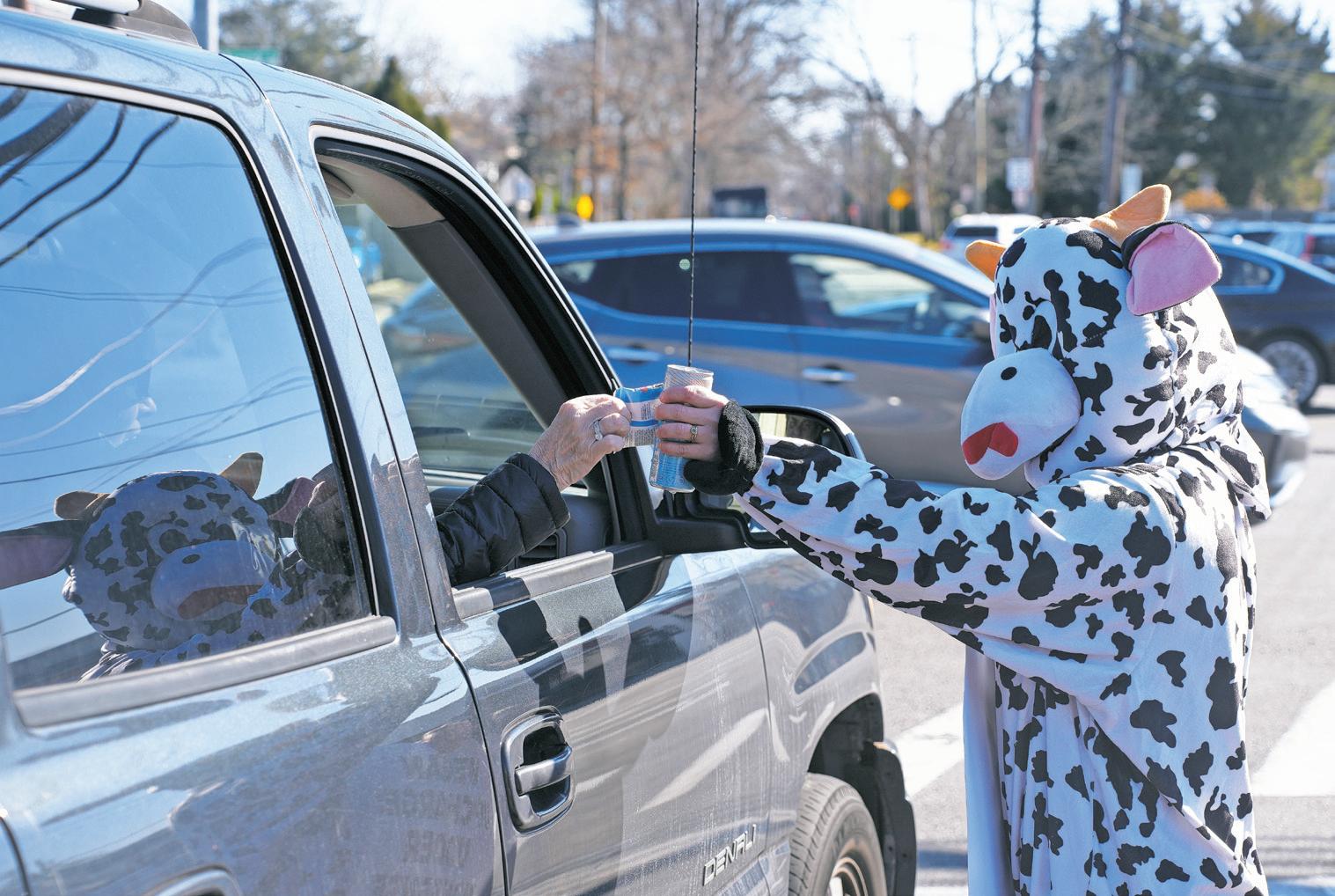 If you traveled along Merrick Road on Feb. 14, you likely saw Juliana Di Leonardo, vice president of Humane Long Island, dressed in a cow costume, clutching a sign that read “Vegan Up Charge: Udder Nonsense.”