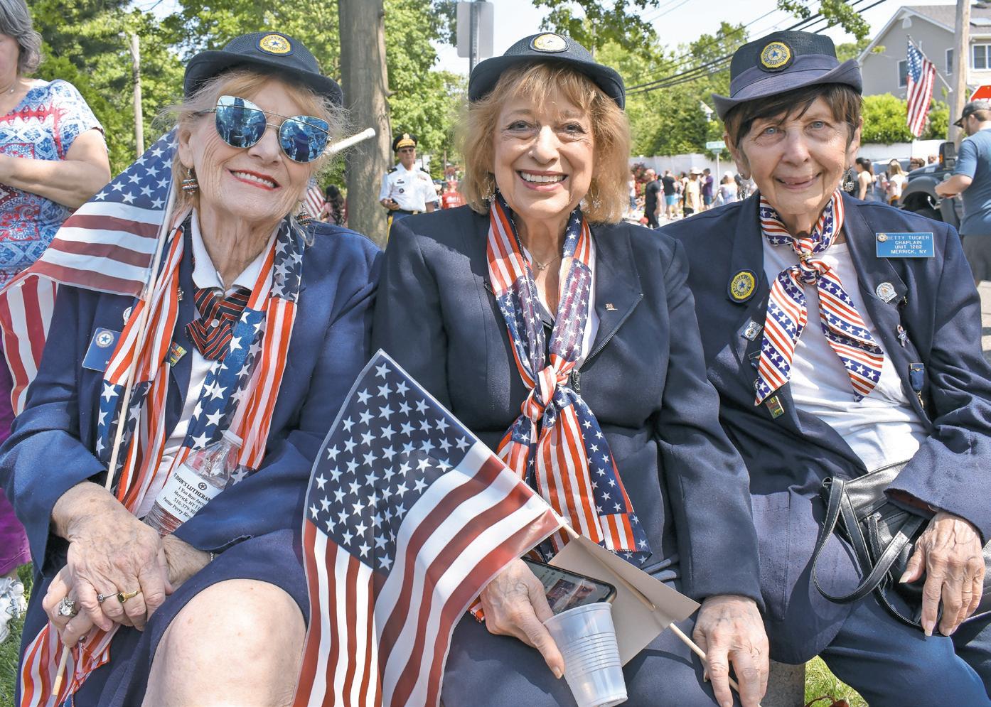 The Stadryck family, above, made memories during the parade, snapping a selfie. Edward Moore, a member of Post 1282, led the crowd in the Pledge of Allegiance at a short ceremony in North Merrick following the parade. Story, more photos, Page 3.