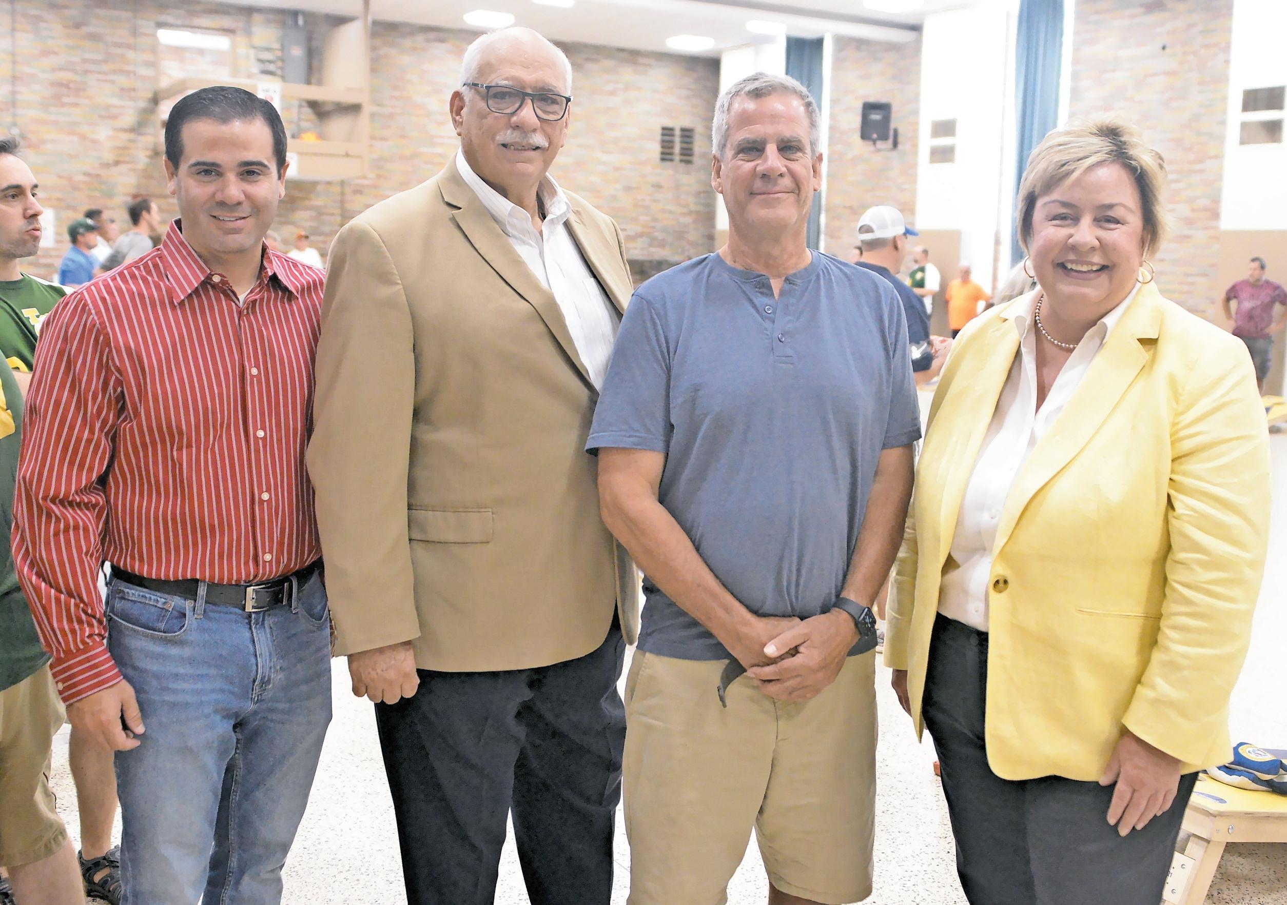 MeMbers oF Merrick’s Hook and Ladder Company 1 with elected officials in front of the company’s traditional, white trucks. Staging areas for the parade, and the parade itself, took place on residential streets in Merrick.