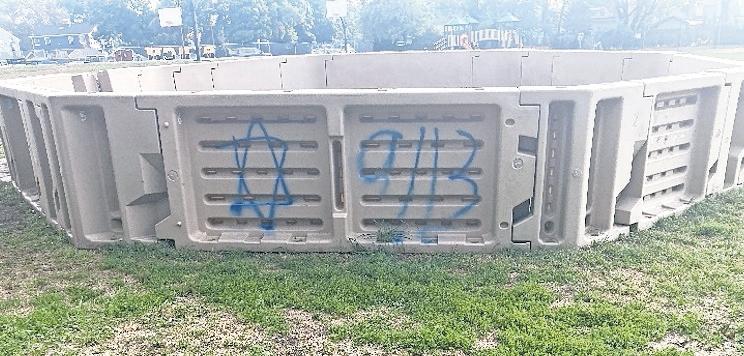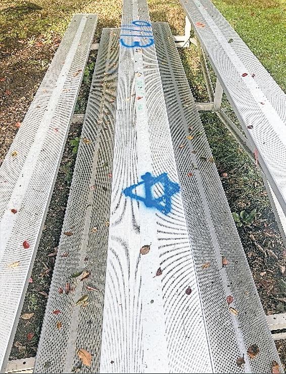 The markings included the Star of David, the word “Jew” and the date 9/13. It was sprayed on trees, bleachers and the school’s gaga ball court.