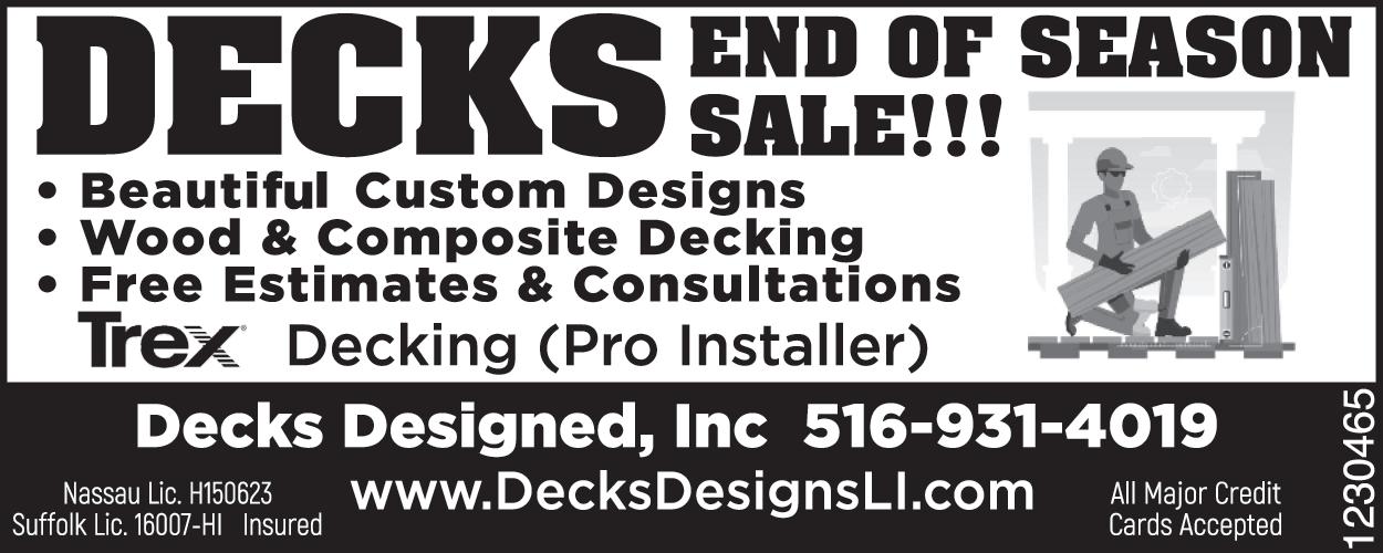 October 5, 2023 — MERRICK HERALD 4 Tub-to-shower conversions and fiberglass replacements typically require a two-day installation. ‡Lifetime warranty valid for as long as you own your home. *Offer ends 1/31/24. All offers apply to a complete Bath Fitter system only, and must be presented and used at time of estimate. Minimum purchase required. Terms of promotional financing are 24 months of no interest from the date of installation and minimum deposit. Interest accrues from date of purchase, but is waived if paid in full within 24 months. Monthly payments are required during the 24 months, and making only the required monthly payments will not pay off the amount financed. See representative for details. Qualified buyers only May not be combined with other offers or applied to previous purchases. Valid only at select Bath Fitter locations. Offers and warranty subject to limitations. Fixtures and features may be different than pictured. Accessories pictured are not included. Plumbing work done by P.U.L.S.E. Plumbing. MD MPL #17499, NJ MPL #10655, DE MPL #PL-0002303, MD MPL #82842, VA MPL #2710064024, IA MPL #18066, OH MPL #37445, WV MPL #PL07514, MI MPL #8111651. PA HIC #PA017017, NJ HIC #13VH03073000, WV HIC #WV053085, MD HIC #129346, VA HIC #2705155694, MD HIC #122356, VA HIC #2705096759, IA HIC #C112725, WV HIC #WV038808, MD HIC #129995, VA HIC #2705146537, DC HIC #420213000044. Each Franchise Independently Owned And Operated By Bath Saver, Inc, LLC, Iowa Bath Solutions, LLC, Ohio Bath Solutions, LLC, Mid Atlantic Bath Solutions, LLC. TUB-TO-SHOWER CONVERSIONS TUB LINERS TUB & SHOWER REPLACEMENTS THE PERFECT FIT. With hundreds of custom designs for showers or tubs, a one-day install† and a lifetime warranty‡, it’s no wonder 2 million happy customers have trusted Bath Fitter with their bath remodels. Contact us today to book your FREE consultation! 1-800-280-3695 bath-fitter.com/local24 24 MONTHS 0% INTEREST SPECIAL OFFER OR SAVE 10%* CELEB RATING40 YEARS 1231810 1227009 NEED STORAGE? CHOOSE BiG BOB'S! • Open 7 days a week. • Month-to-month leases. • Individual alarms • Video surveillance. • Moving and packing supplies available. • Personal and business use. • All sizes available. • Computerized access system. GET YOUR FiRST MONTH FREE with a 3-month agreement. 2 Endo Blvd., Garden City 516-227-0200 BIG SELFBOB'SSTORAGE 516-227-0200 BIG SELFBOB’SSTORAGE 516-227-0200 1 block south of Stewart Avenue, just west of the Meadowbrook Parkway (Exit M3) Adjacent to north campus of Nassau Community College SELF STORAGE HOW TO REACH US Our offices are located at 2 Endo Blvd. Garden City, NY 11530 and are open from 8:30 a.m. to 5:30 p.m., Monday through Friday. MAIN PHONE: (516) 569-4000 Periodicals postage paid at Garden City, NY 11530 and additional mailing offices. Postmaster send address changes to Bellmore Herald or Merrick Herald, 2 Endo Blvd. Garden City, NY 11530. Newsstand Price: $1. Subscription rates: $60 for 1 year Annual Subscription Rates, $9.75 per quarter auto-pay or $50 one-time payment within Nassau County or $60 outside of Nassau County. Copyright © 2023 Richner Communications, Inc. All rights reserved. HERALD bellmore HERALD merrick ■ WEB SITE: www.liherald.com/bellmore ■ E-MAIl: Letters and other submissions: belleditor@liherald.com ■ EDITORIAl DEPARTMENT: Ext. 207 E-mail: belleditor@liherald.com The Bellmore Herald USPS 017547, is published every Thursday by Richner Communications, Inc., 2 Endo Blvd. Garden City, NY 11530. ■ WEB SITE: www.liherald.com/merrick ■ E-MAIl: Letters and other submissions: merrickeditor@liherald.com ■ EDITORIAl DEPARTMENT: Ext. 207 E-mail: merrickeditor@liherald.com The Merrick Herald USPS 017651, is published every Thursday by Richner Communications, Inc., 2 Endo Blvd. Garden City, NY 11530. SUBSCRIPTIONS: Press ”7” E-mail: circ@liherald.com Fax: (516) 569-4942 ClASSIFIED ADVERTISING: Ext. 286 E-mail: ereynolds@liherald.com Fax: (516) 622-7460 DISPlAY ADVERTISING: Ext. 249 E-mail: rglickman@liherald.com Fax: (516) 569-4643