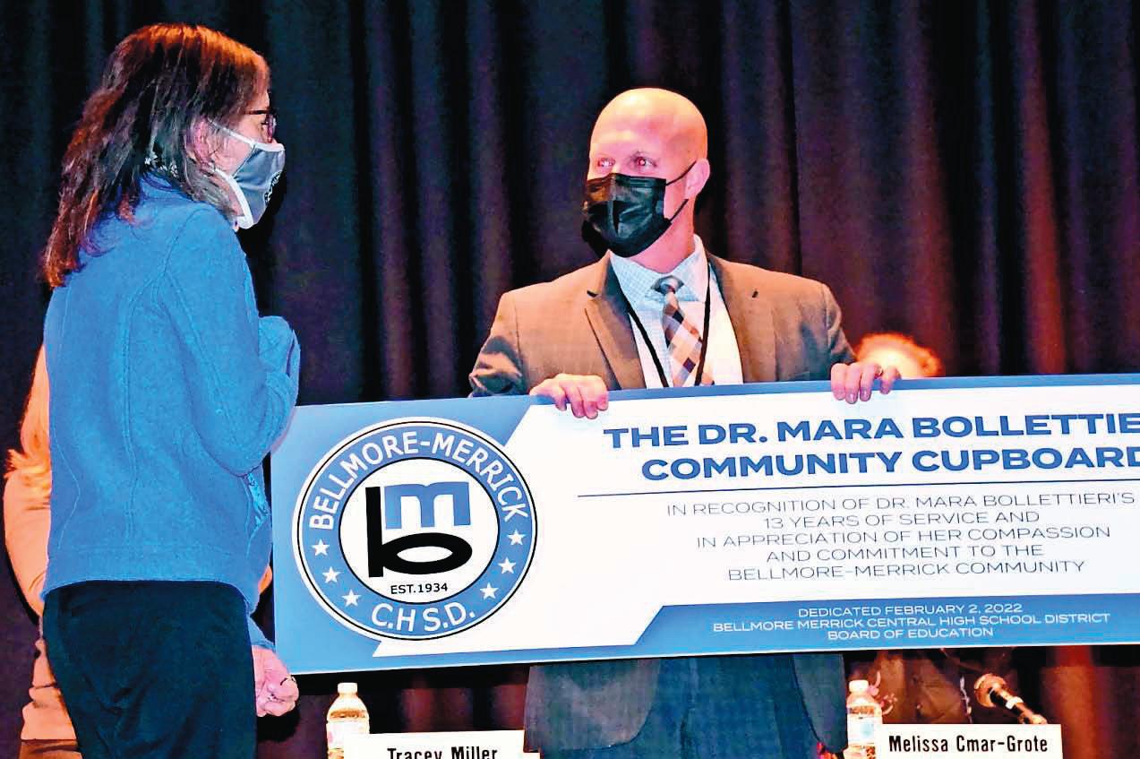 Community cupboard gets a new name. The Bellmore-Merrick Central High School District food pantry was renamed after former Deputy Superintendent Dr. Mara Bollettieri.