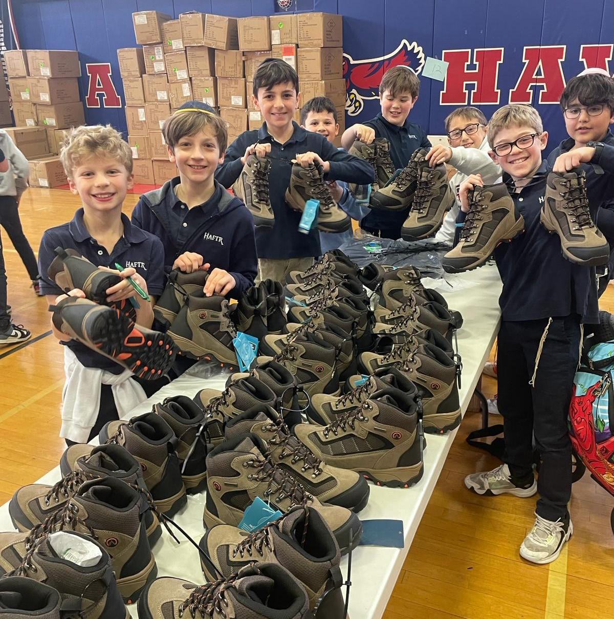 The Hebrew Academy of Five Towns and Rockaway schools raised money and purchased and packed 1,800 boots earlier this month.