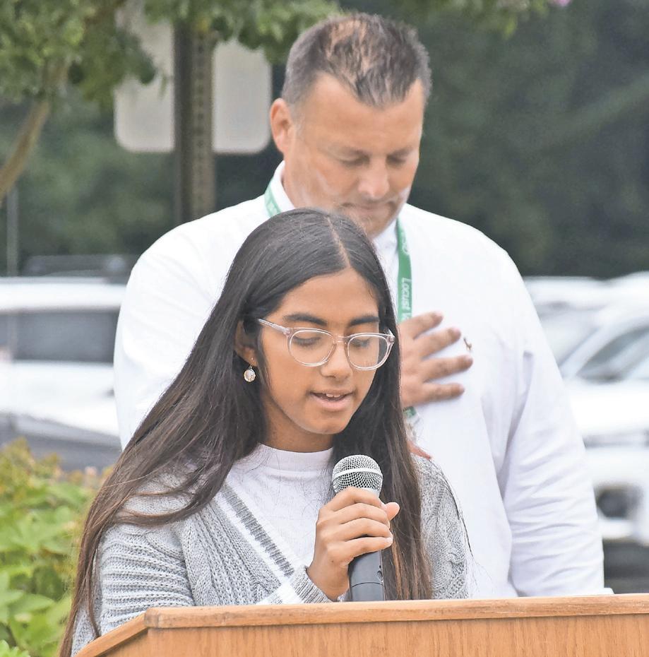 Gaitley Stevenson-Mathews performed a stirring rendition of the “Star Spangled Banner” accompanied by the Oyster Bay Community Band, who also played other songs to mark the day.