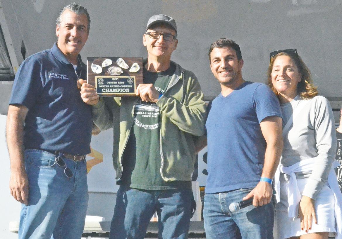 The Ayoub family, above, were among the thousands who attended Oyster Fest last weekend, when they won prizes, enjoyed rides and ate delicious food. Riley Nathan, near right, from Plainview, and her friend Julia Marinoff, from South Carolina, chowed down. Story, more photos, Page 10.