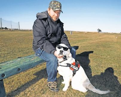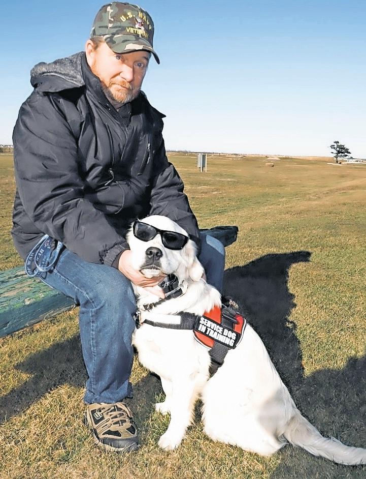 John Mulvey, an Oceanside resident and decorated Navy veteran, has a new leash on life after receiving his new service dog Storm, a rescue English Golden Cream Retriever who is changing his life by helping him transition back into civilian life.