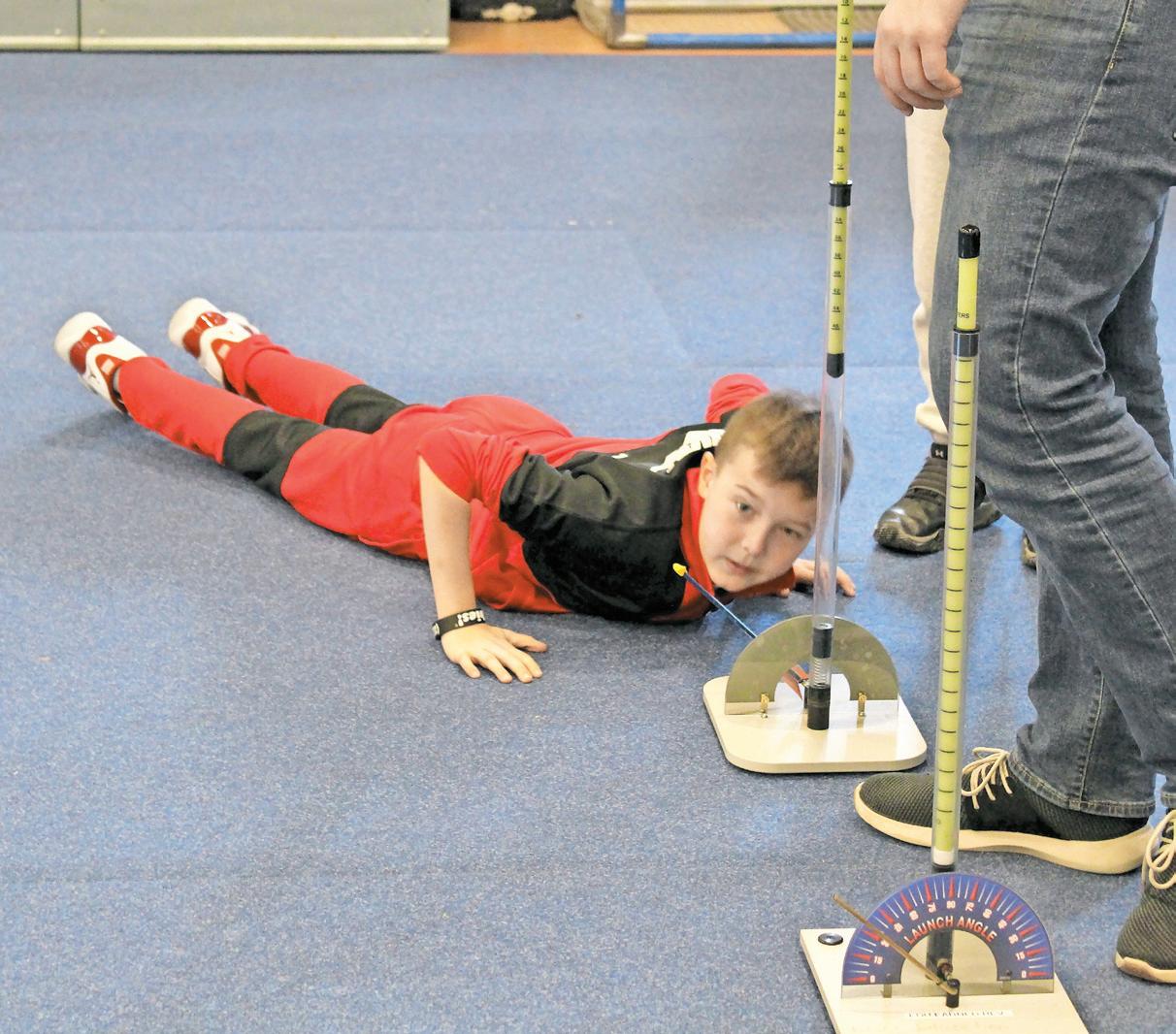 Sixth-grader Kieran Callanan was among the students who tried repeatedly to perfect their rocket launch, attempting to accomplish the farthest distance reachable. “When I go to 45 (degrees) it goes