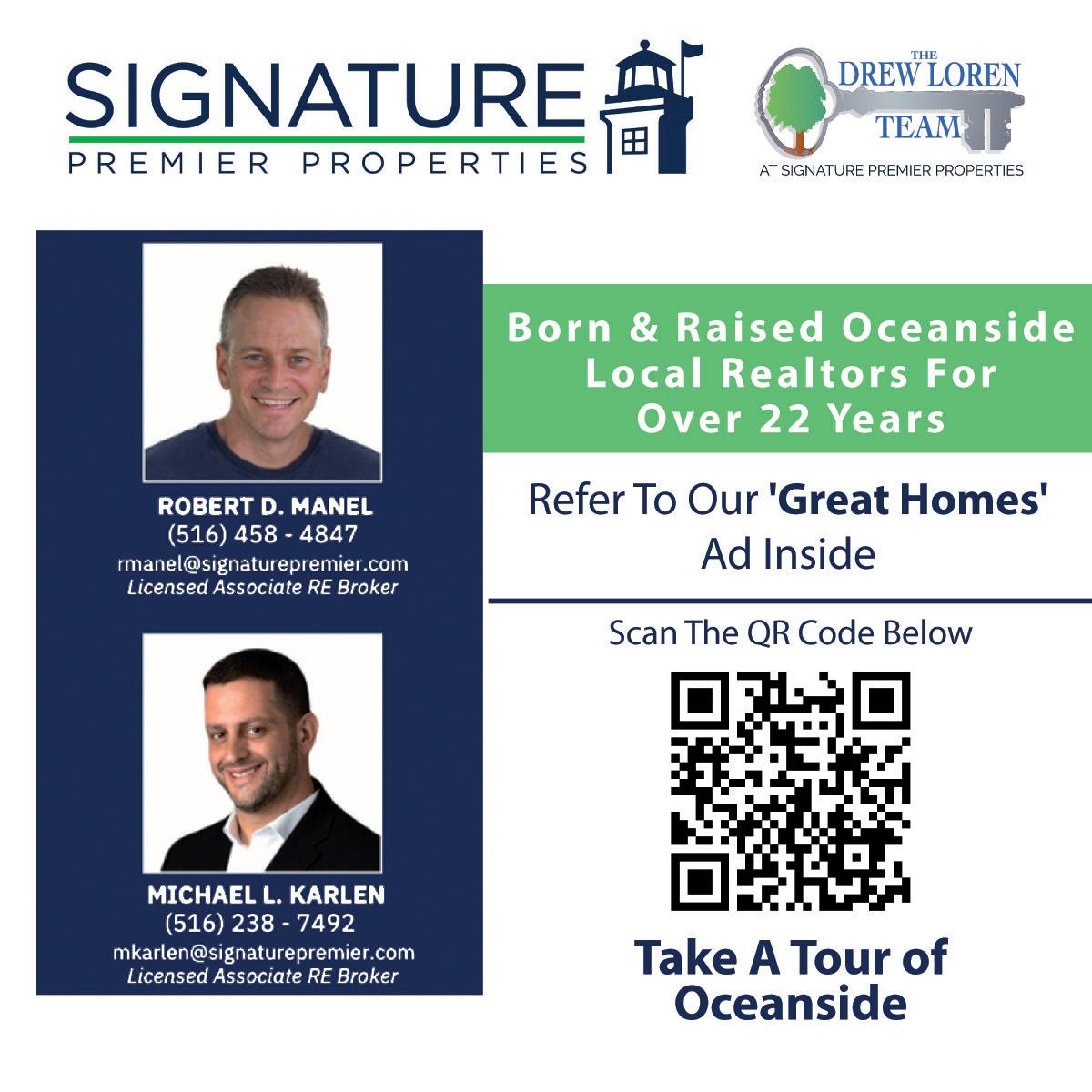 5 OCEANSIDE/ISLAND PARK HERALD — August 24, 2023 DO YOU KNOW THE VALUE OF YOUR PROPERTY? CALL US FOR YOUR FREE MARKET APPRAISAL! LET US GUIDE YOU FROM START TO FINISH ANNA APREA Licensed Associate Broker Cell: 646-279-4781 AnnaAprea@aol.com I speak Italian STACY FREDRICKS Licensed Real Estate Salesperson Cell: 516-859-3794 Stacyrealtor2@gmail.com OKSANA MALAYEVA Licensed Real Estate Salesperson Cell: 347-575-3800 007oksana@gmail.com I speak Russian SHELLEY SOSNOFF Licensed Real Estate Salesperson Cell: 516-707-2347 ssosnoff@cbamhomes.com IF YOU ARE CURRENTLY LISTED WITH ANOTHER REAL ESTATE COMPANY, PLEASE DISREGARD. 493 ATLANTIC AVENUE OCEANSIDE, NY 11572 CALL OR SCAN TO GET STARTED! RESIDENTIAL AND COMMERCIAL BUY, SELL, RENT Sell or Buy with Us… Get $1000 Off Your Real Estate Attorney Fee! 1226257 EAST ROCKAWAY Bright, Spacious Studio Co-op w/ alcove. Elevator & laundry on floor. Low Maint Incl: Taxes, Heat, Water & Cooking Gas. Near LIRR & Shops. Why rent? OWN! Asking $165K. ROCKVILLE CENTRE Buy in the Desirable RVC Building, The Lenox! Mint, TOTALLY Renovated 2 BR, 2 BTHS unit w/private terrace. Elevator, Indoor Garage Parking! Close to LIRR. Asking $489K. OCEANSIDE Oversized 100X100 Lot! 4 BR/3 BTHS, Expanded Split Level “Ocean Lea” area. Asking $719K. OCEANSIDE 5BR/2 BTH Colonial. Spacious Rooms. Att Garage. Great Location! SOLD $669K. Close to asking! JUST LISTED JUST REDUCED pENDINg SOLD