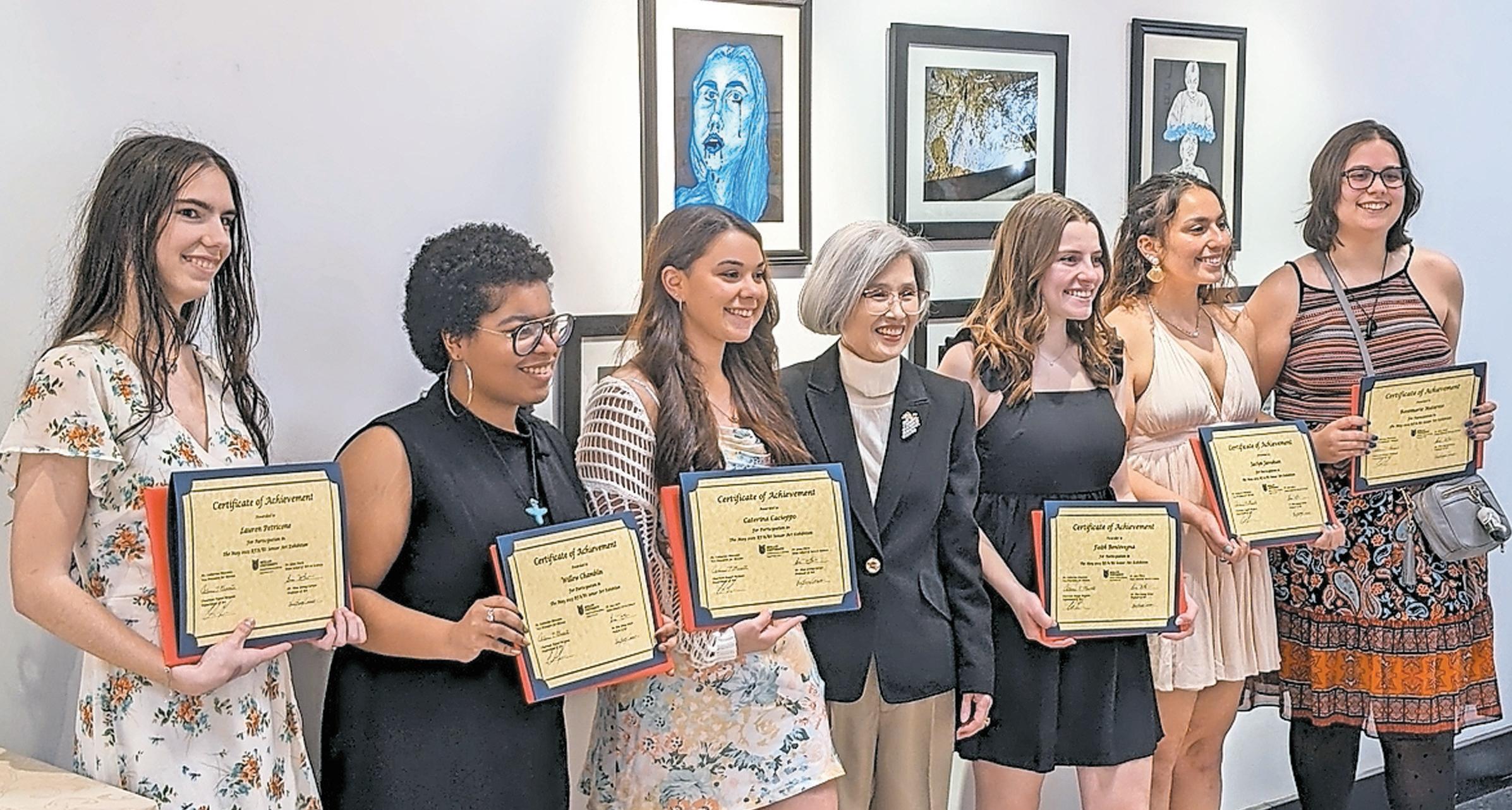 Assemblyman Brian Curran recognized five students from Rockville Centre — Nicolas Albarano, Kathleen Conlon, Morgan Harloff, Michael Muscerella and Ali Pullaro — for making a positive difference in their community on May 6 at the Lynbrook Public Library.