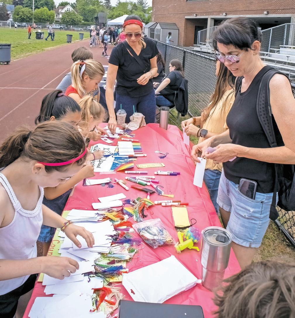 Kids taKe a break from the physical activities by creating their own artistic creations during the Wellness Walk and Fair event at South Side Middle School.