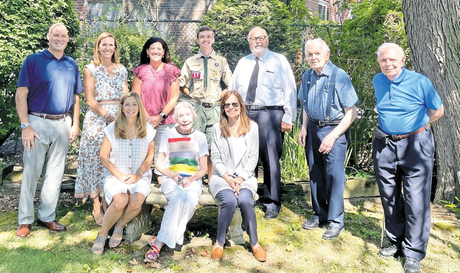Courtesy of the Village of Rockville Centre Village Mayor Francis Murray, Deputy Mayor Kathy Baxley, Trustee Katie Conlon, and Co-Director of the Department of Public Works Gwynne Feiner joined Boy Scout James Giangregorio to see the enhancements he made for his Eagle Scout Project.