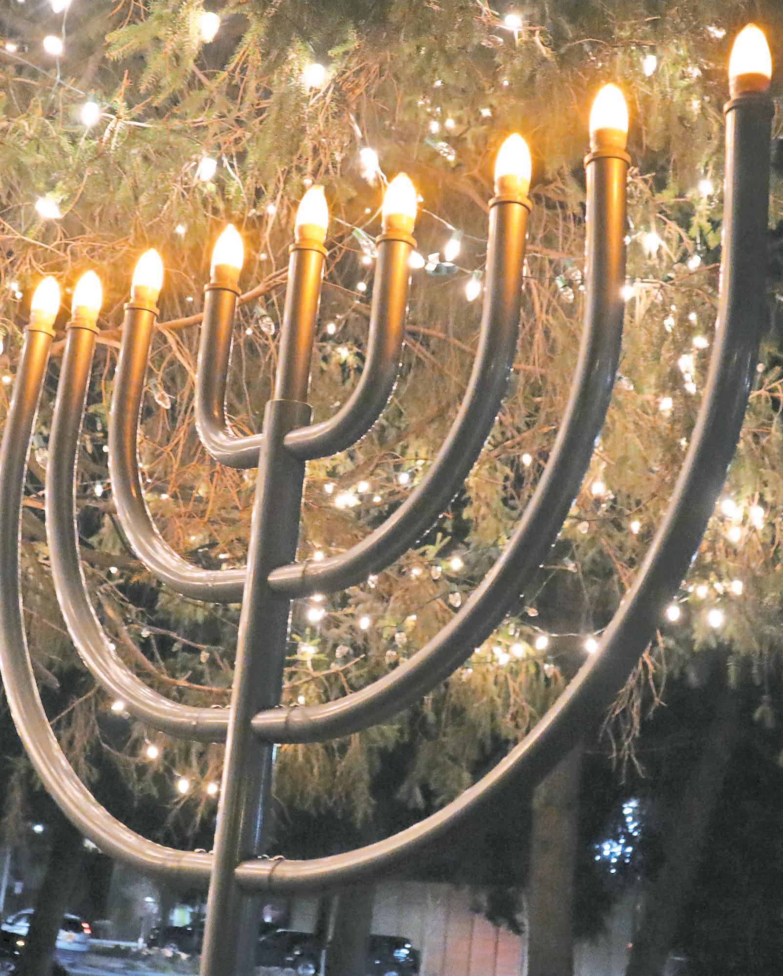 The menorah shines brightly following the Village of Rockville Centre’s first annual menorah lighting ceremony on the Village Green.