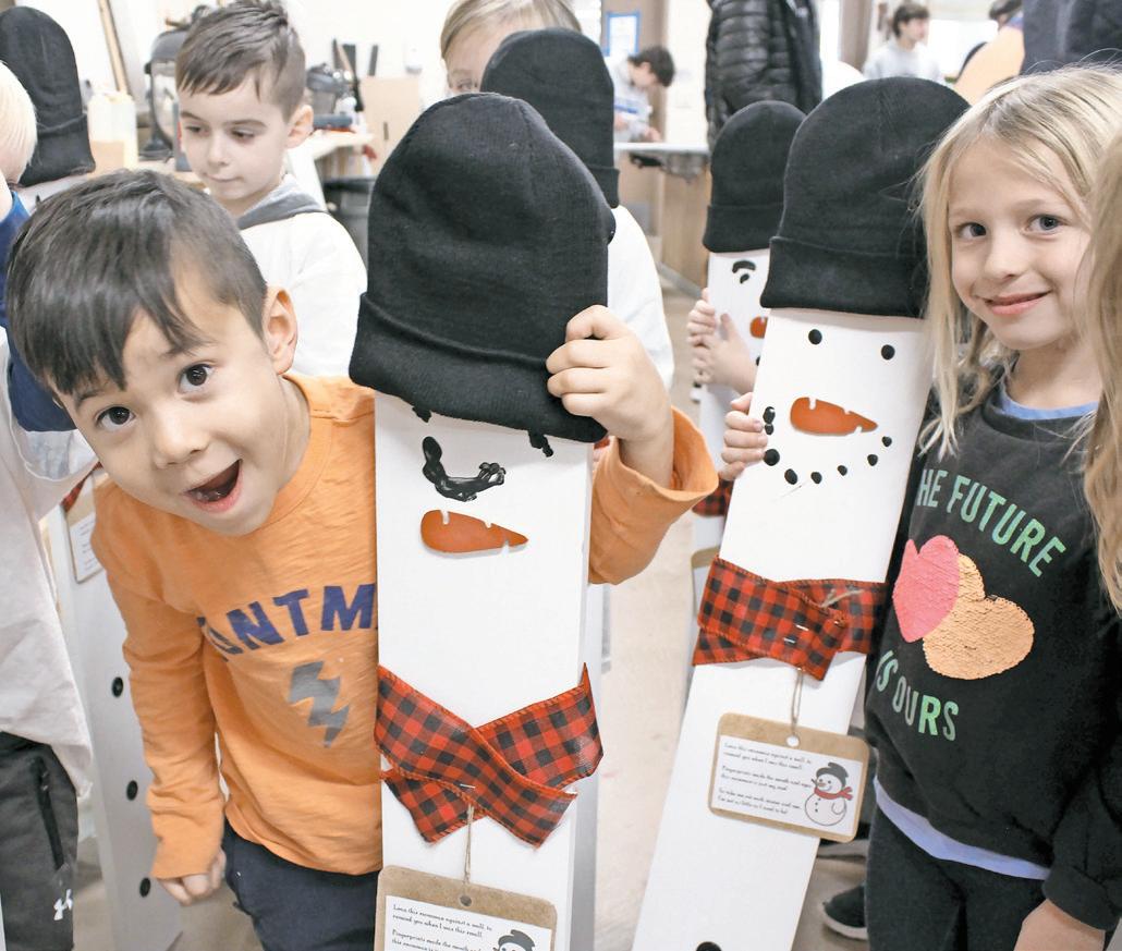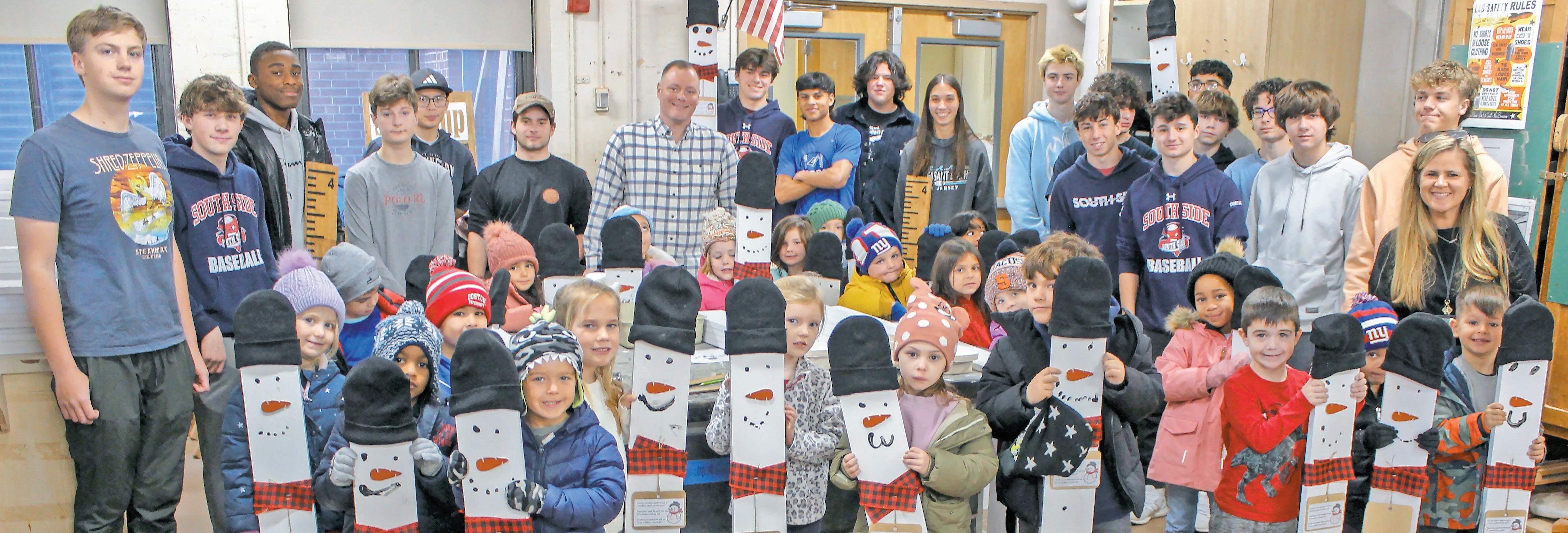 Elementary students teamed up with SSHS's wood design class to build their own snowmen.