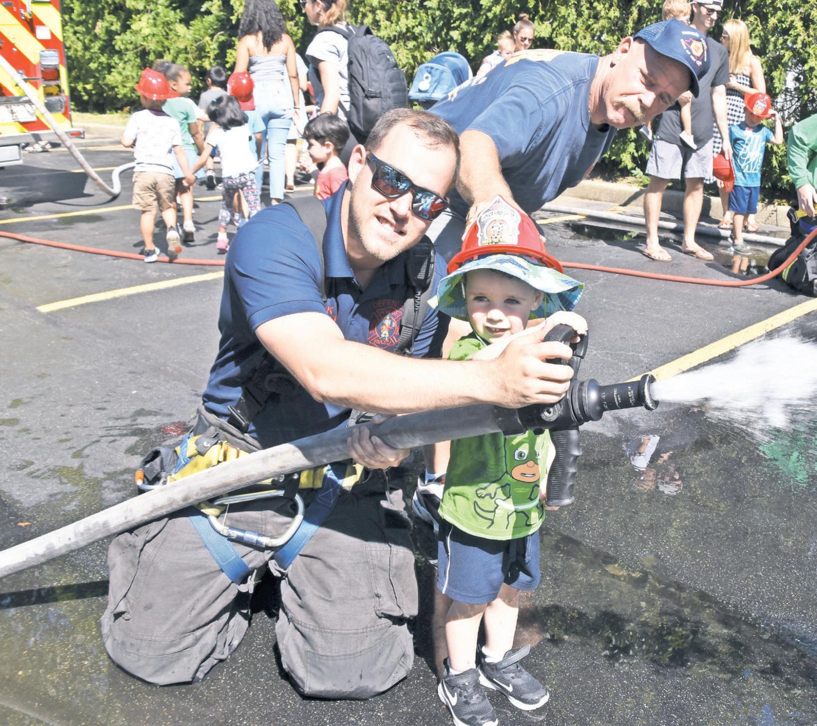 James Avondet, chief of the Rockville Centre Volunteer Fire Department, also stopped by with a special gift for Rabbi Lerner and Rabbi Cohen, who were officially appointed as chaplains of the department. They were both presented with their own honorary fire helmets.